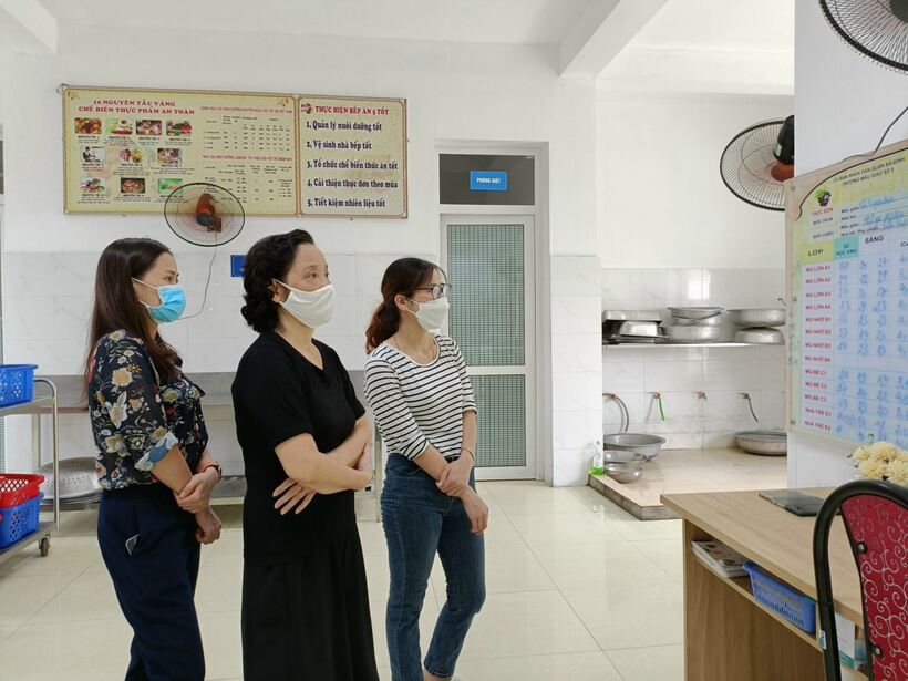 Trong công tác giao nhận thực phẩm, nhà trường luôn đặc biệt lưu ý sự giám sát, kiểm tra, theo dõi của phụ huynh. Việc giao nhận thực phẩm có sự góp mặt của phụ huynh đã thành thông lệ mỗi ngày tại nhà trường.