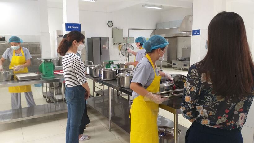 Phụ huynh giám sát quy trình chia thực phẩm chín