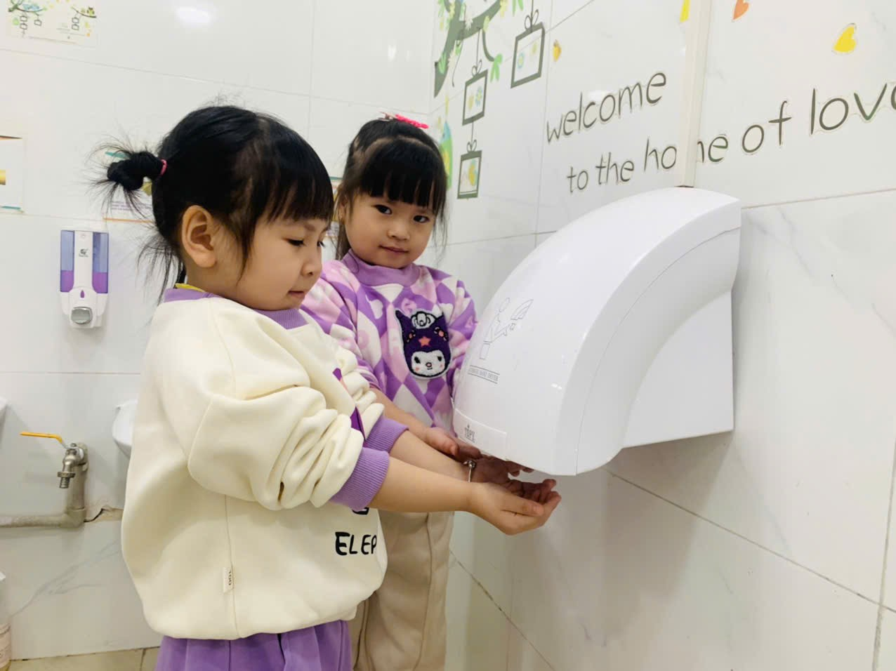 Ngay từ những ngày đầu mùa đông, nhà trường đã chủ động triển khai các biện pháp phòng tránh rét kịp thời để giữ ấm cho trẻ, đảm bảo các lớp học đều trải thảm xốp, chăn đệm ấm, phòng học, phòng ngủ có hệ thống cửa đóng kín tránh gió lùa. Tại mỗi lớp học, nhà trường đều trang bị điều hòa hai chiều, bình ủ nước muối ấm, cây nước ấm, máy sấy tay tự động và bình nóng lạnh trong phòng vệ sinh để phục vụ nhu cầu nước sinh hoạt, vệ sinh của trẻ đảm bảo nước ấm về mùa đông. Vì vậy vào mùa đông phụ huynh cũng an tâm hơn khi gửi con tại trường.