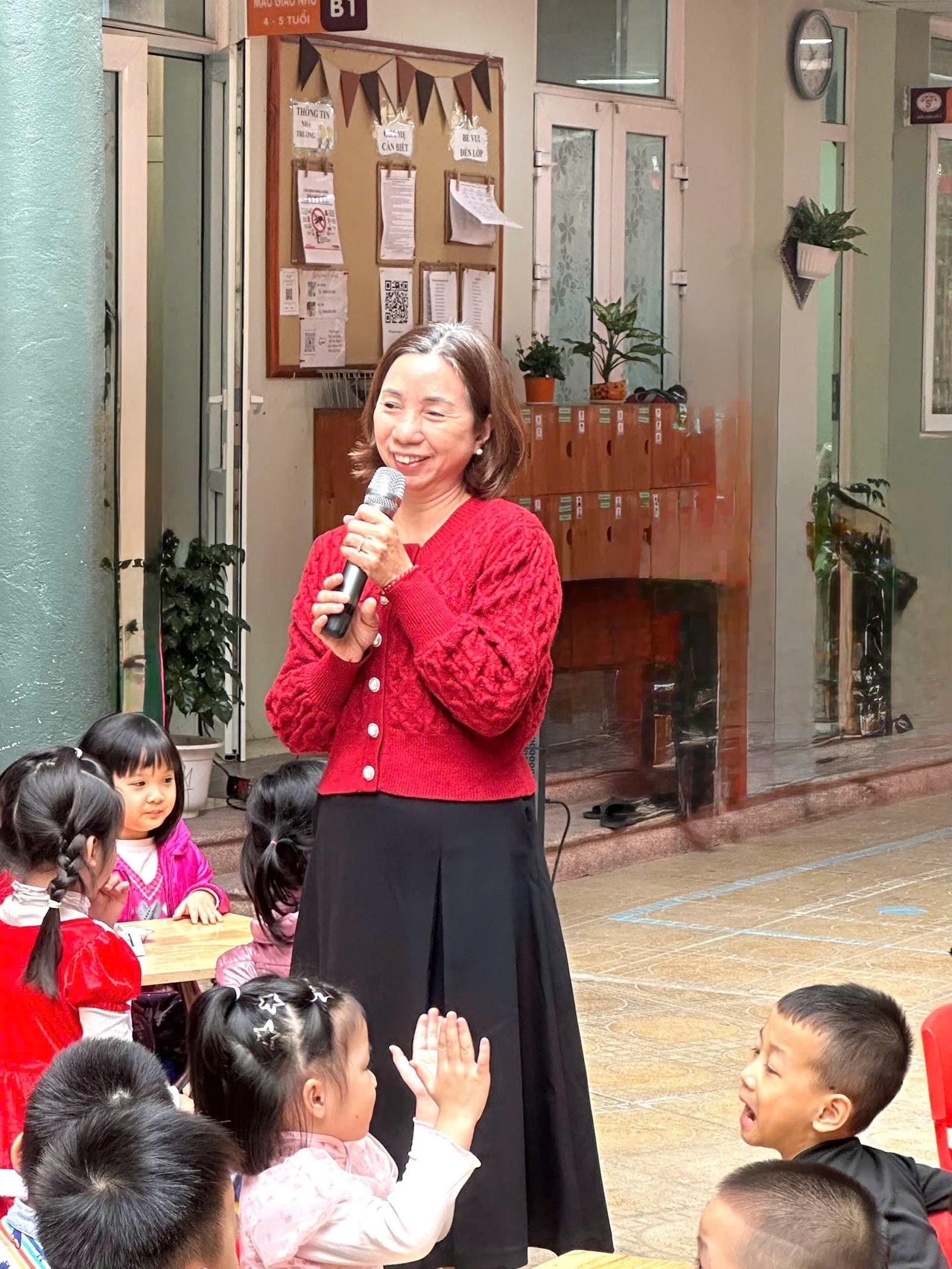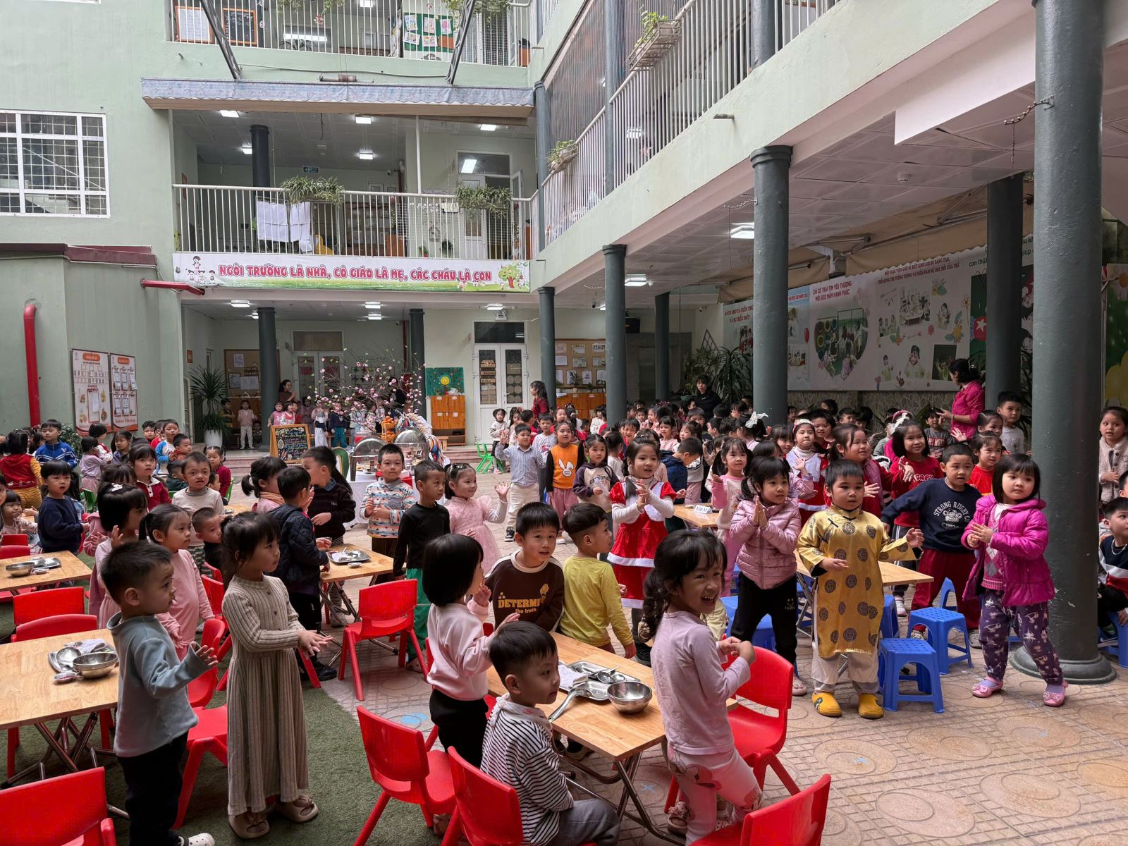 * Giao lưu kết nối: Tạo cơ hội để các bé ở các khối lớp khác nhau cùng trò chuyện, chia sẻ niềm vui đón năm mới.