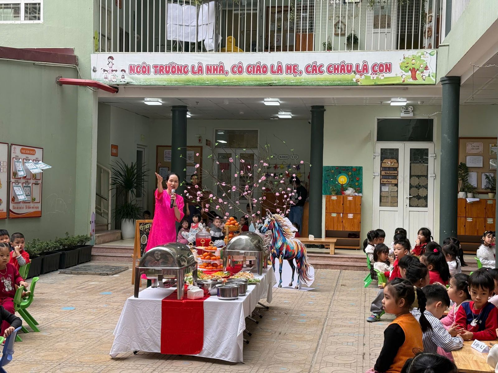 * Chụp ảnh check-in: Khu vực trang trí  năm mới 2026 để các con lưu giữ khoảnh khắc đáng yêu bên cô giáo và bạn bè.