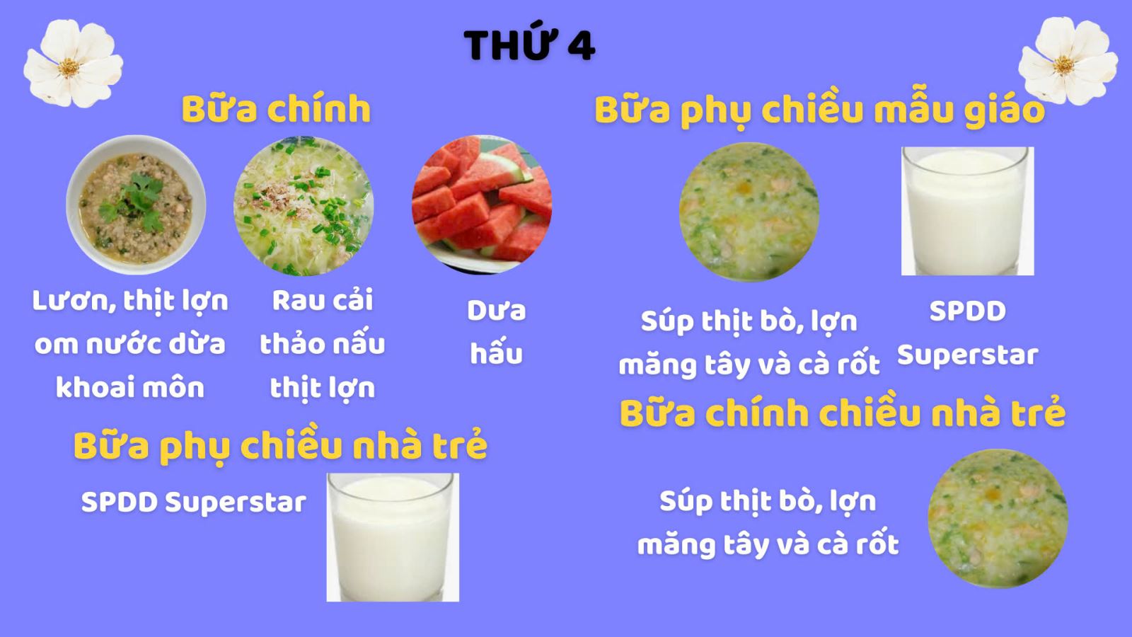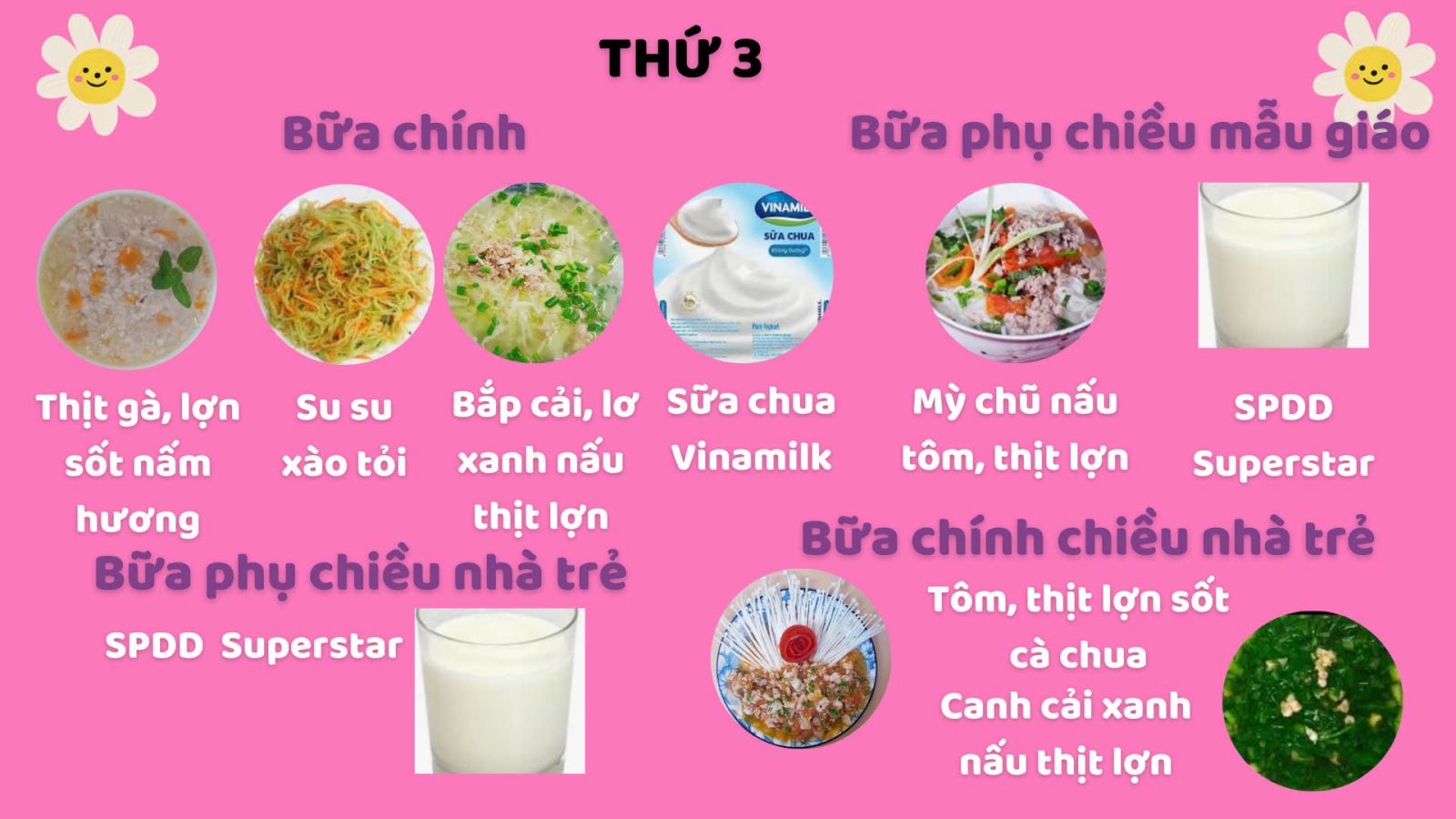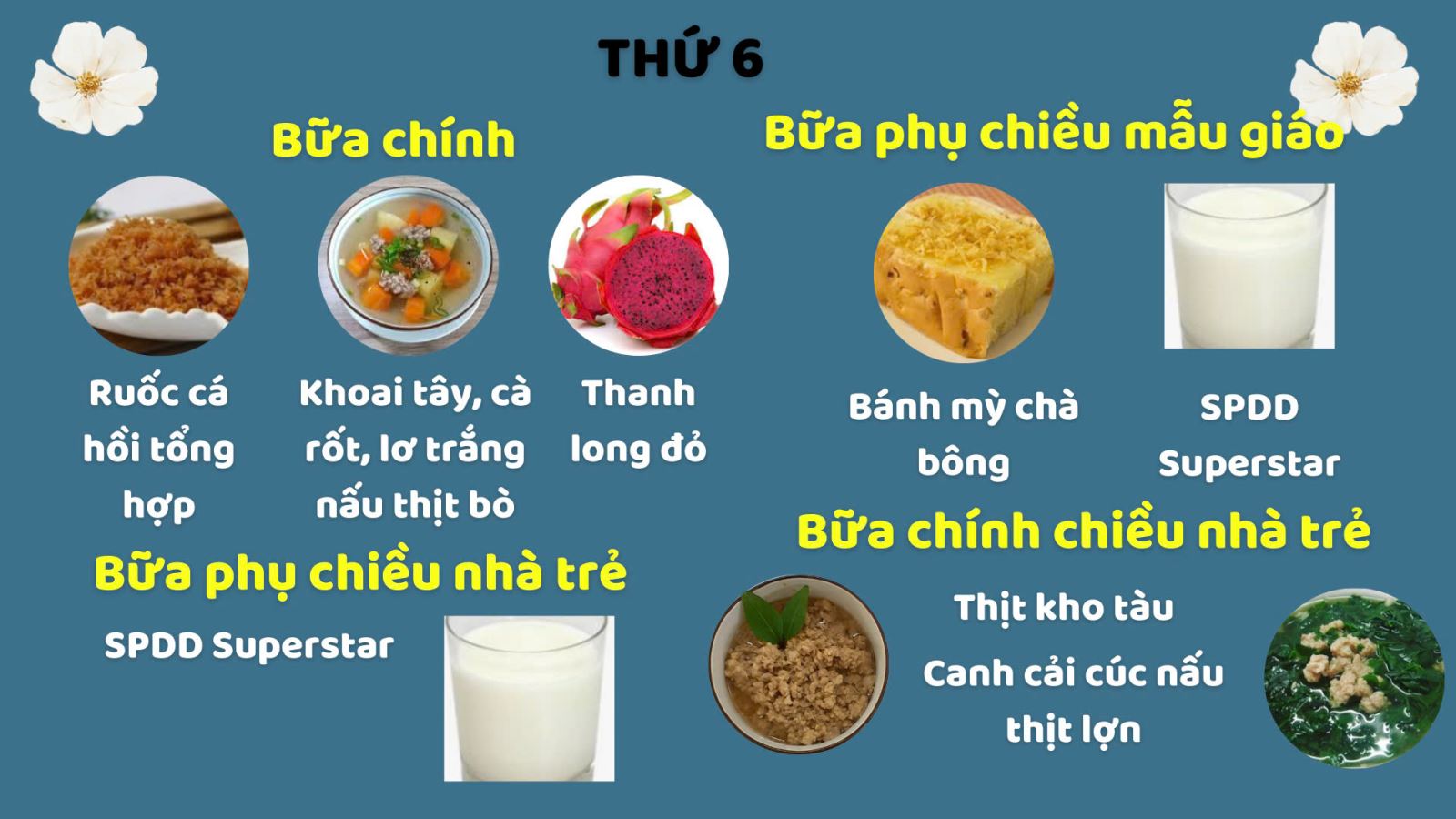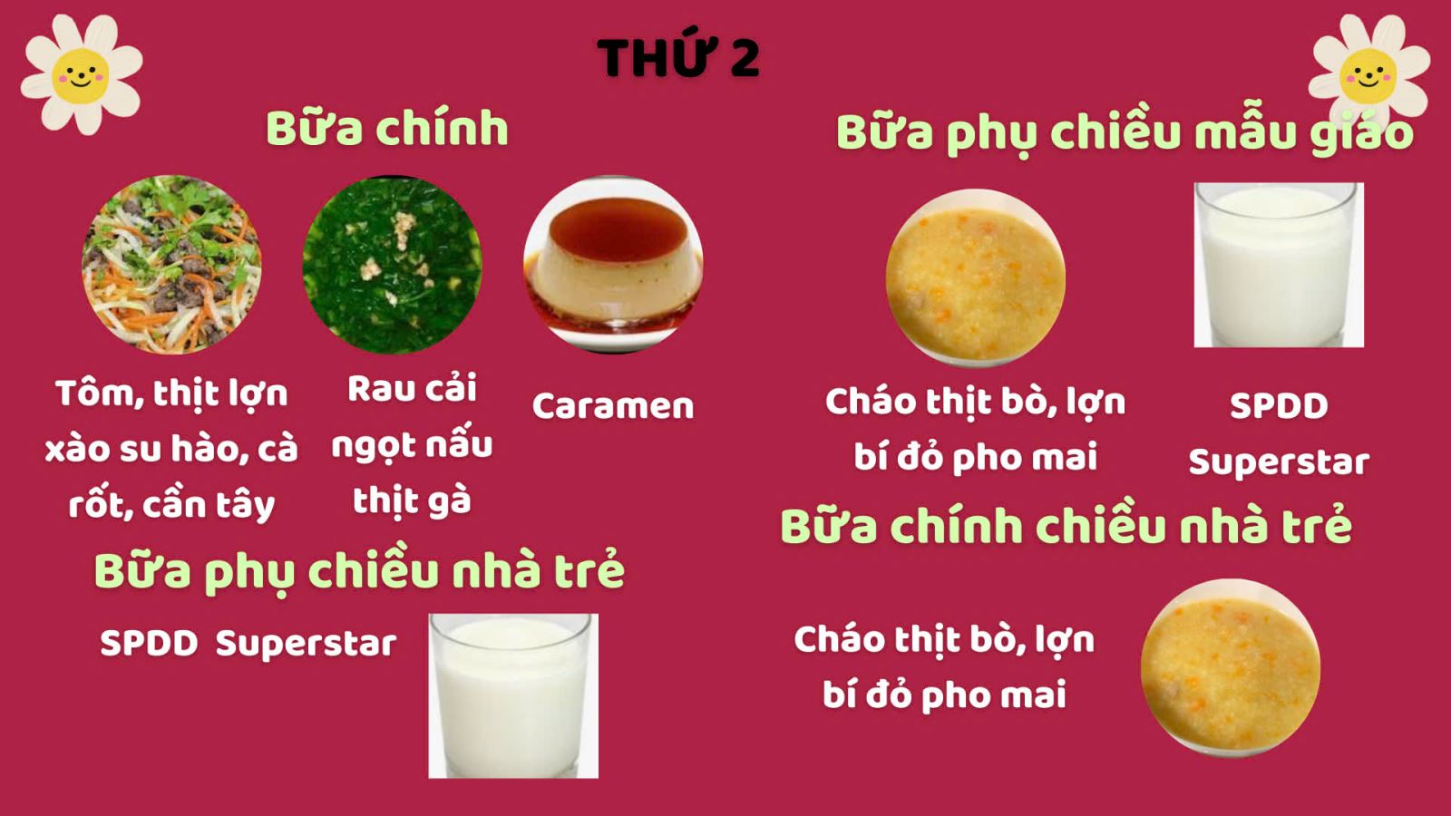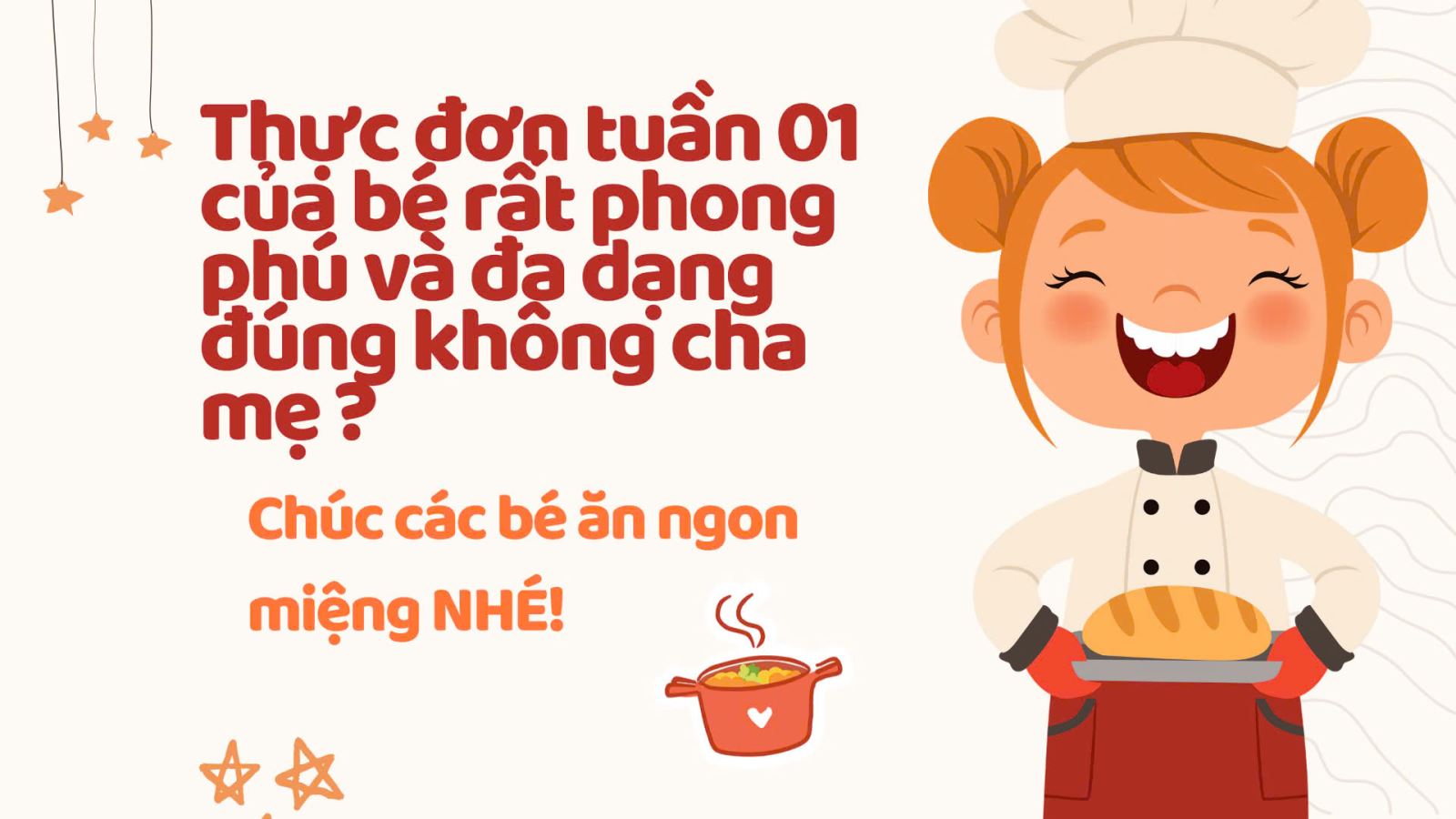 Thực đơn tuần 1 tháng 3 năm 2025 Ngày: 03/03/2025 Kính gửi quý phụ huynh thực đơn tuần 1 tháng 3 Thực đơn trong tuần có thể thay đổi để phù hợp hoạt động của nhà trường và các con. Lượt xem: 163 Người đăng bài: bam truyền thông Đánh giá: Tổng số điểm của bài viết là: 0/5 trong 0 đánh giá