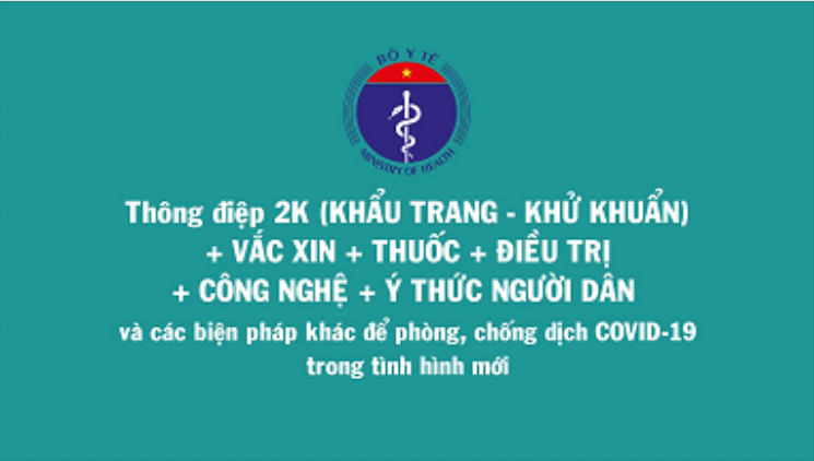 Trong thông điệp phòng, chống dịch COVID-19 mới nhất của Bộ Y tế, thông điệp 5K giảm còn 2K (khẩu trang, khử khuẩn). Cùng với thay thế thông điệp 5K, Bộ Y tế cũng kêu gọi người dân tiêm vaccine COVID-...