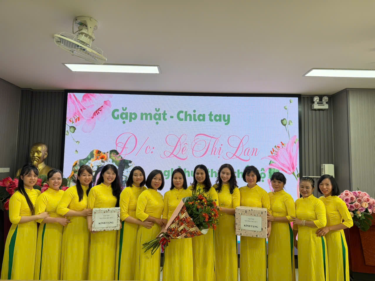 Buổi gặp mặt khép lại bằng những bức hình lưu niệm ấm áp và bữa tiệc liên hoan thân mật tại Sen Tây Hồ. Dù từ nay đồng chí Lan chính thức nghỉ chế độ theo quy định của Nhà nước, nhưng những kỷ niệm đẹp về một người chị, người đồng nghiệp mẫu mực sẽ mãi luôn lưu giữ trong trái tim của tập thể cán bộ, giáo viên Trường Mẫu giáo số 5.
