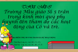TRƯỜNG MẪU GIÁO SỐ 5 TRÂN TRỌNG KÍNH MỜI QUÝ PHỤ HUYNH THAM DỰ CÁC HOẠT ĐỘNG TẠI LỚP CỦA CÔ VÀ TRẺ.