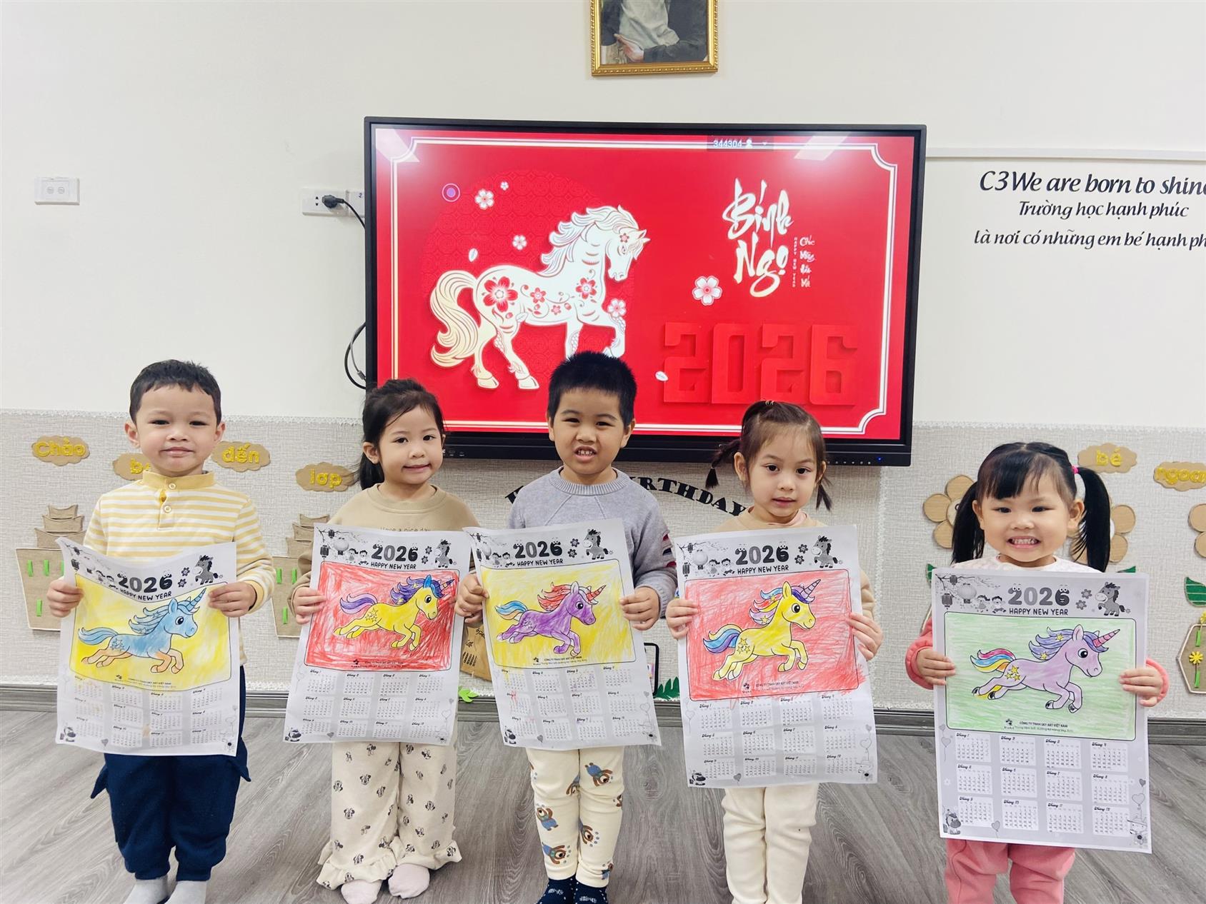 Hoạt động Tạo hình "Bé làm lịch chào mừng năm Bính Ngọ 2026" của các bé lớp C3 trường Mẫu giáo Số 5.