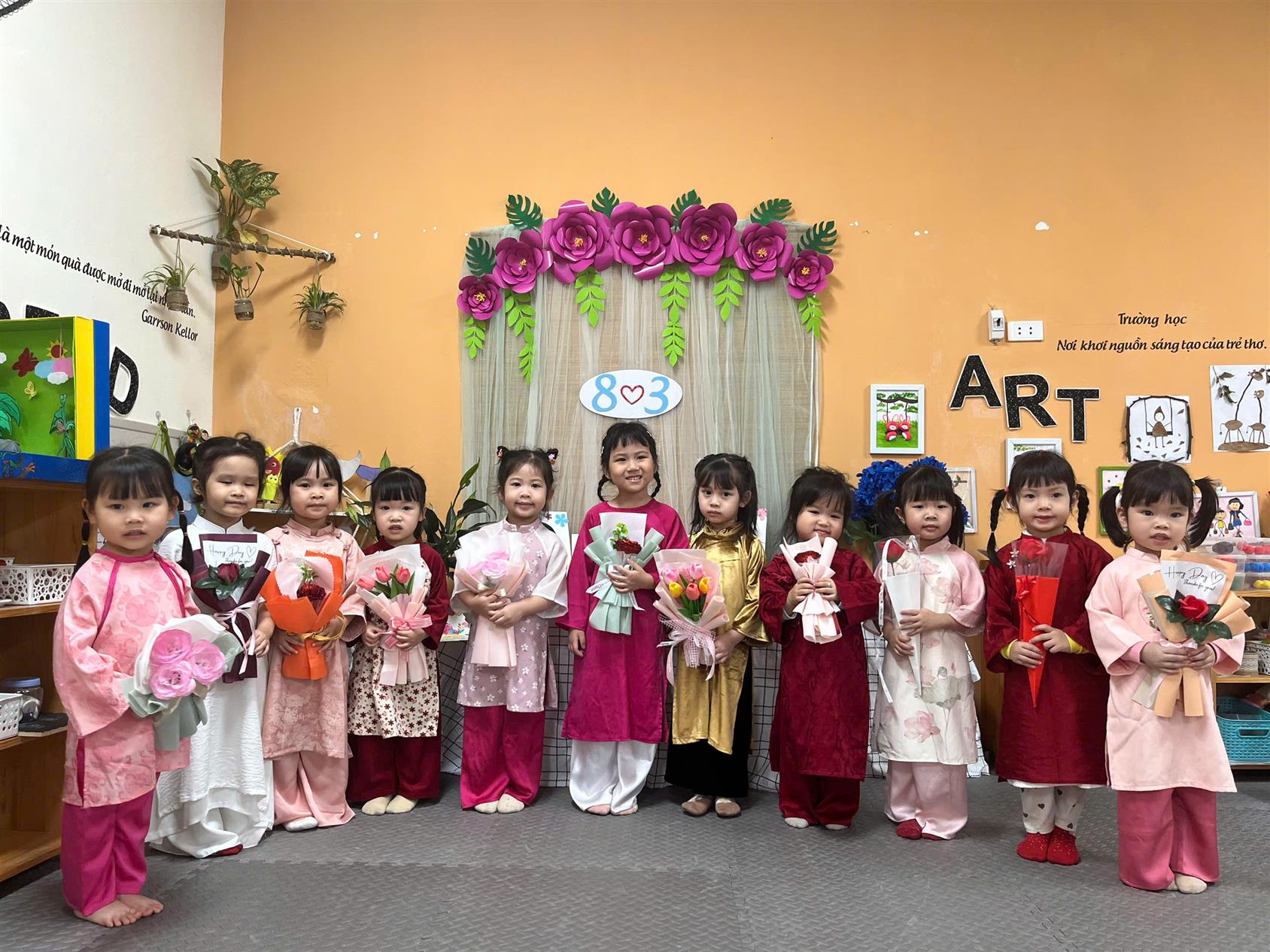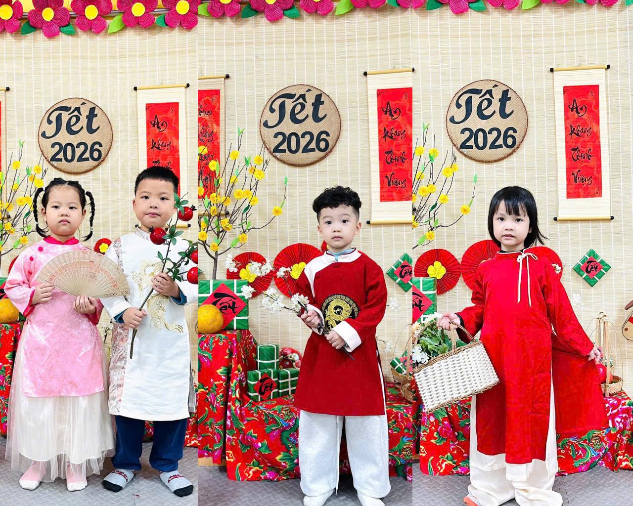 Người ta thường nói: "Thấy áo dài là thấy Tết". Với các bé lớp Mẫu giáo nhỡ, Tết năm nay thật đặc biệt khi các con được tự mình trải nghiệm diện lên bộ áo dài truyền thống của dân tộc.