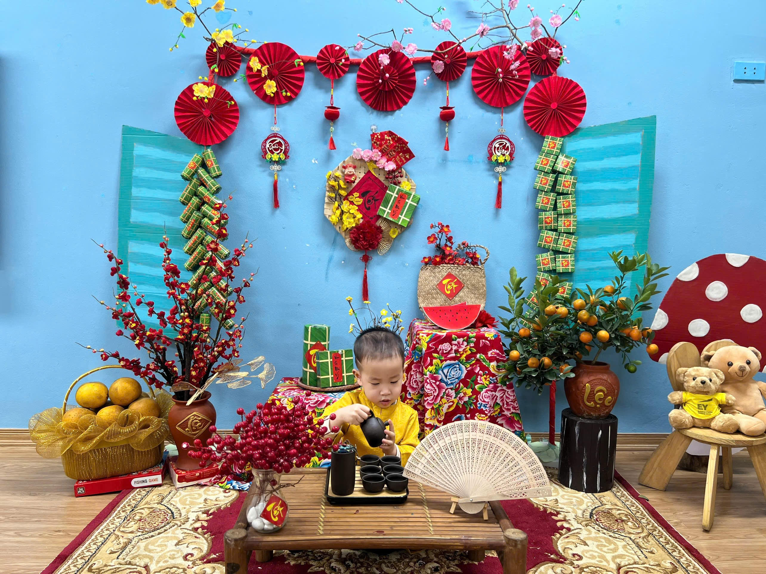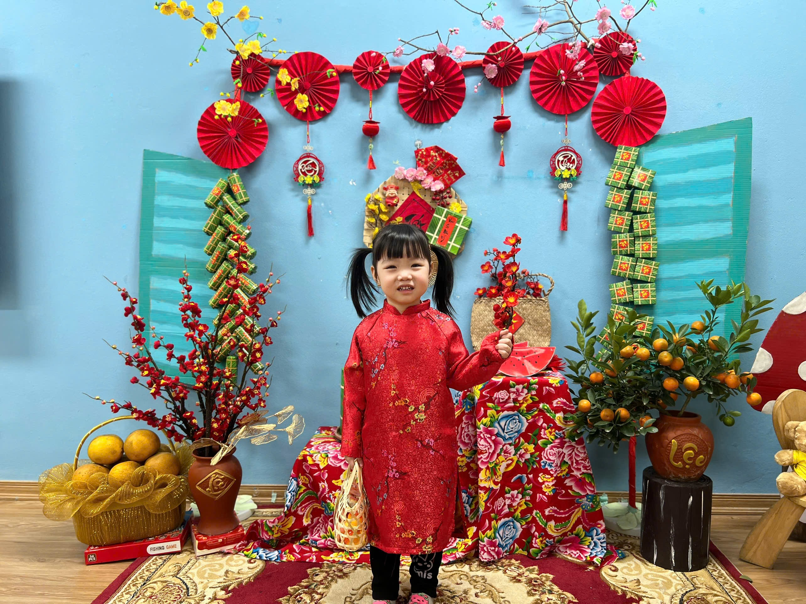 Cảm ơn ba mẹ đã cùng các cô chuẩn bị áo dài để các con có những bức ảnh Tết thật xinh xắn và tràn đầy yêu thương.