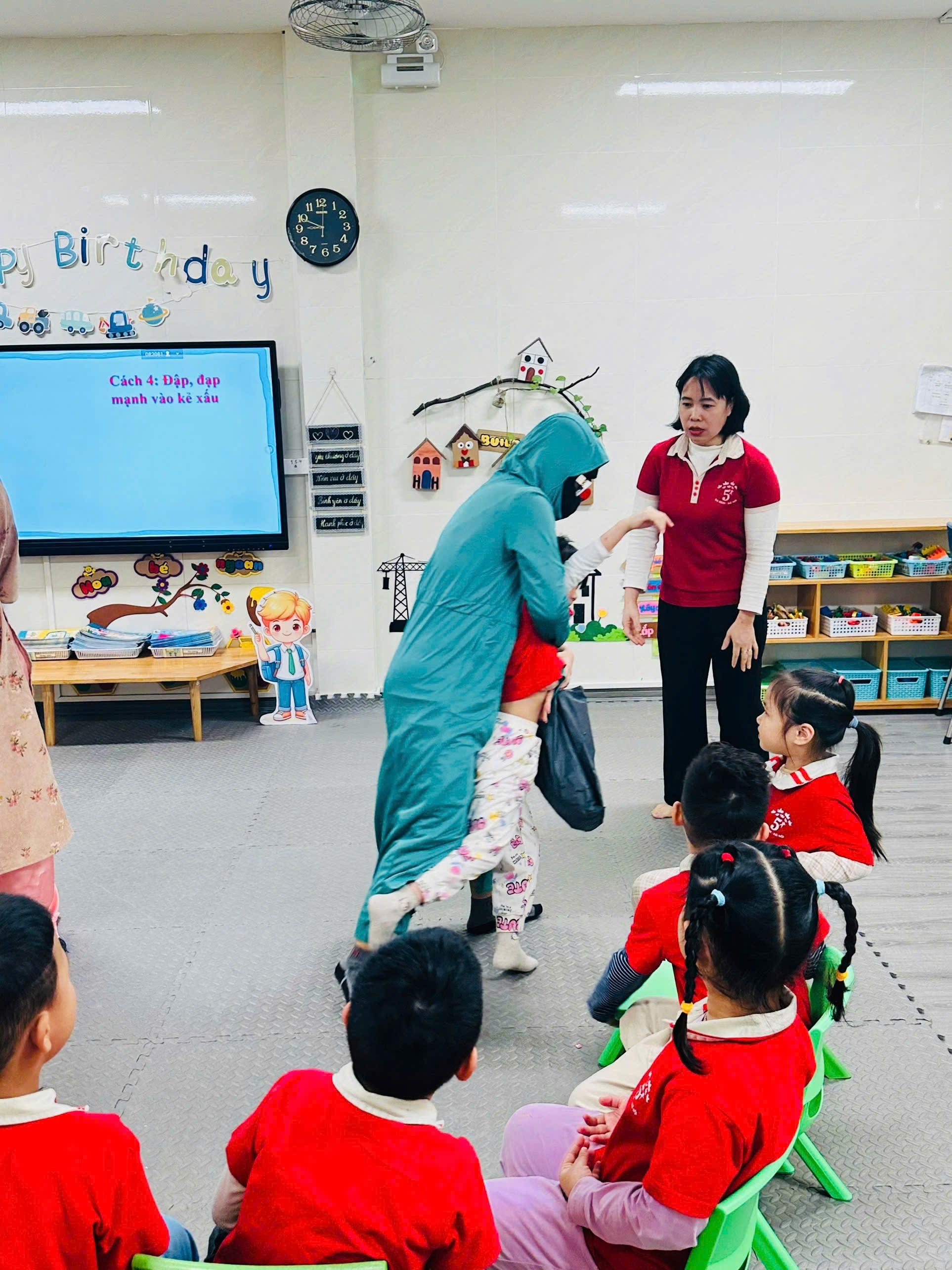 Đặc biệt, thông qua hoạt động đóng vai, trẻ được thực hành các tình huống giả định như từ chối nhận quà, kêu cứu, hoặc tìm cách thoát khỏi sự dụ dỗ, lôi kéo... Điều này giúp trẻ ghi nhớ sâu sắc và mạnh dạn hơn trong việc áp dụng vào thực tế.