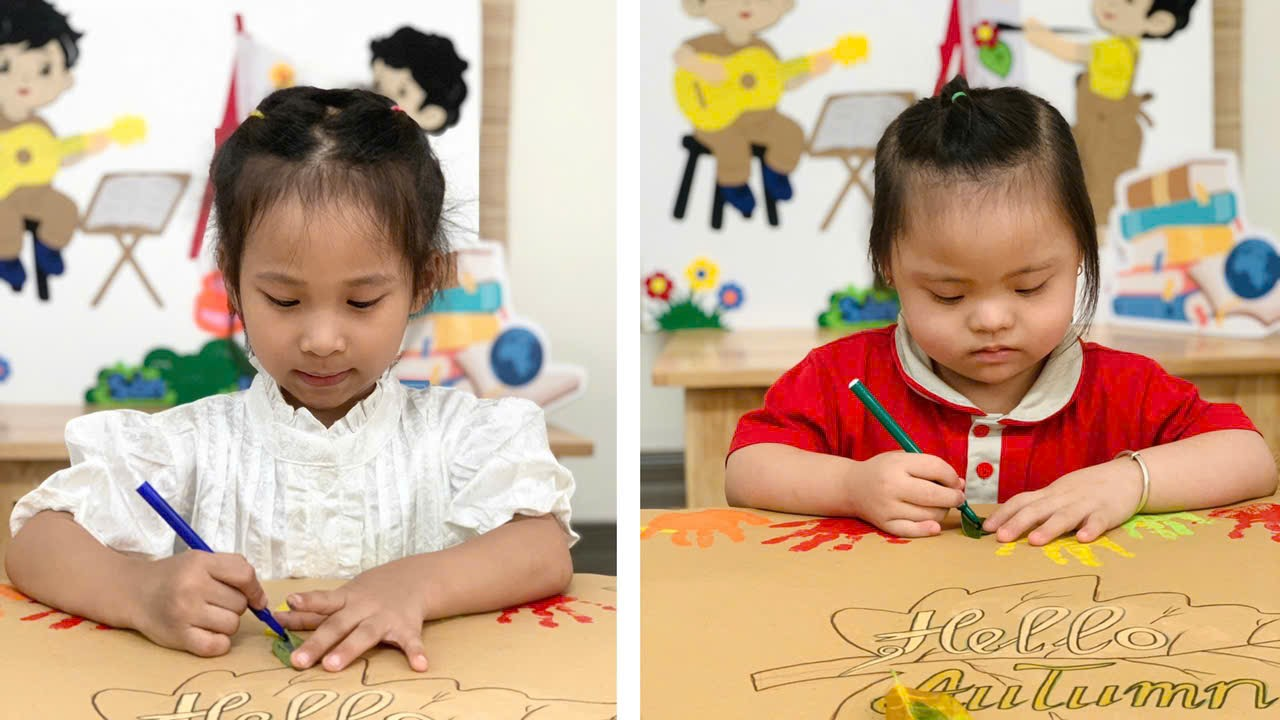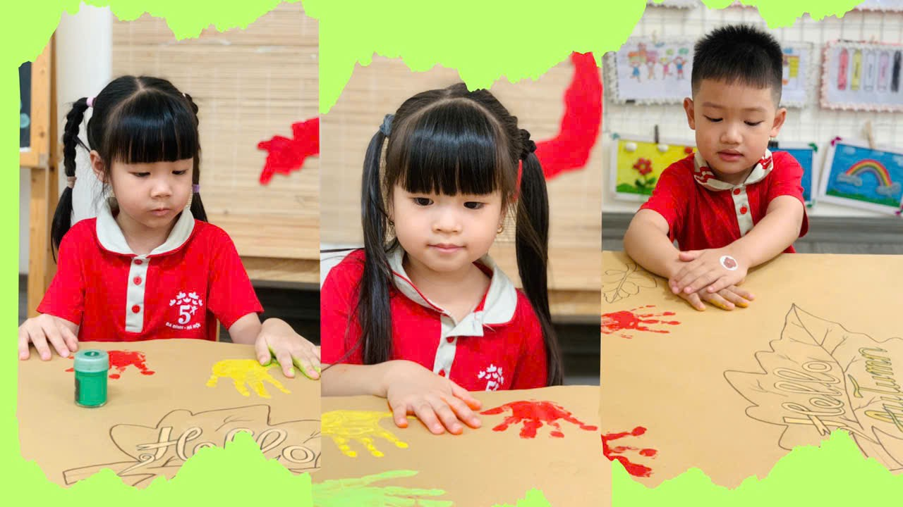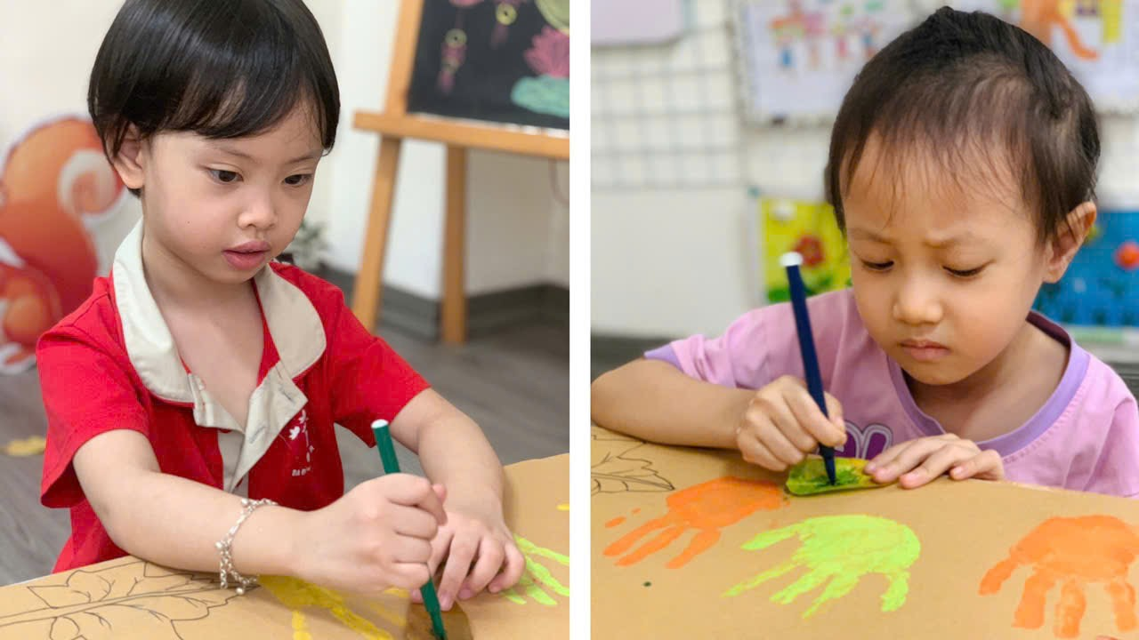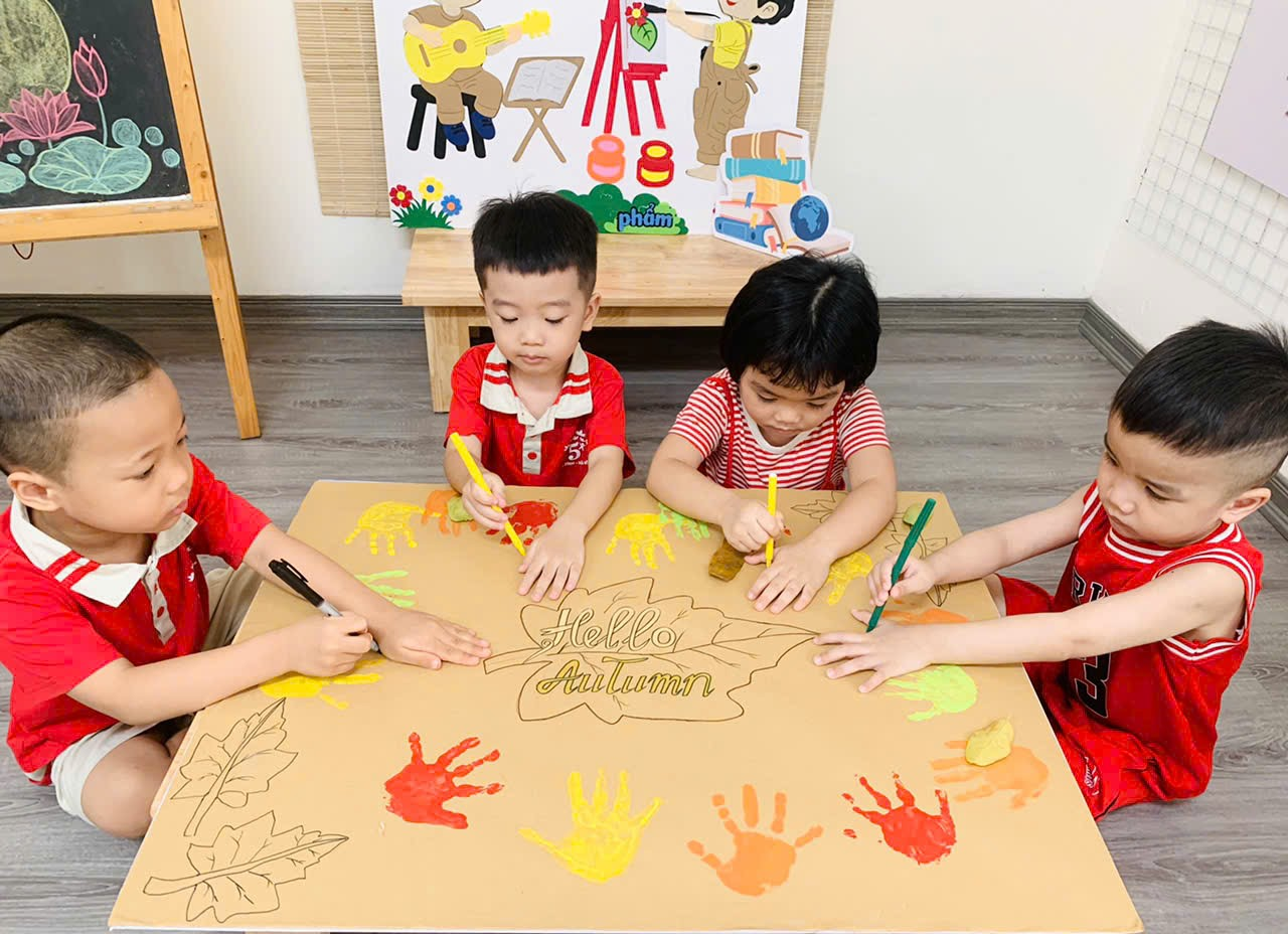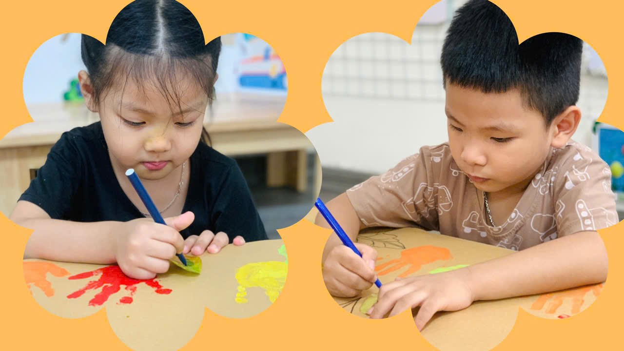 Mời bố mẹ cùng ngắm nhìn những khoảnh khắc đáng yêu của các con khi thực hiện tạo bức tranh mùa thu tuyệt vời nhé!