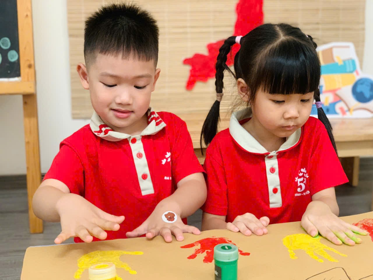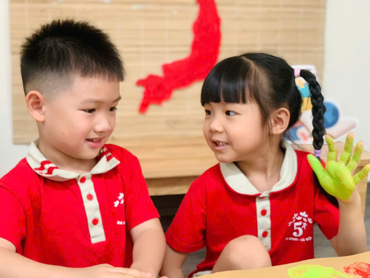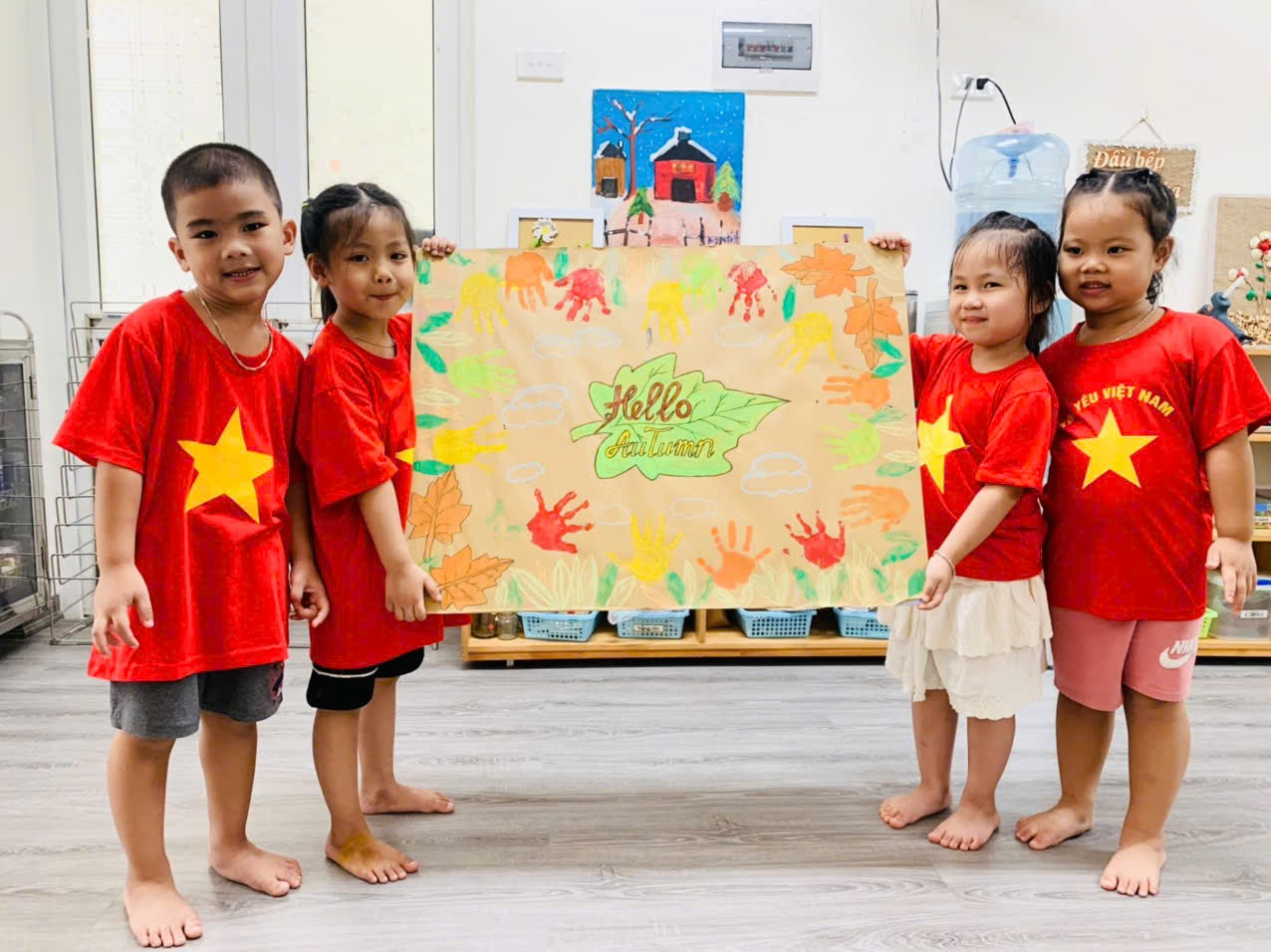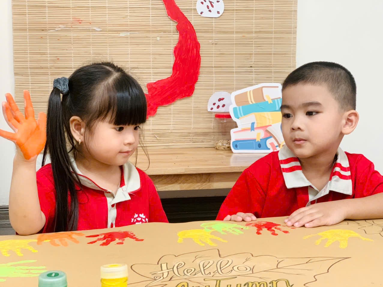 Mời bố mẹ cùng ngắm nhìn những khoảnh khắc đáng yêu của các con khi thực hiện tạo bức tranh mùa thu tuyệt vời nhé!