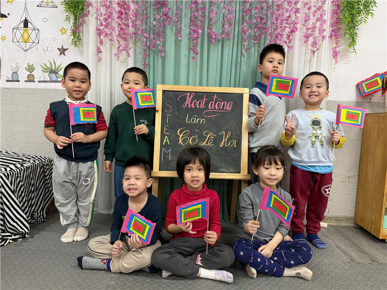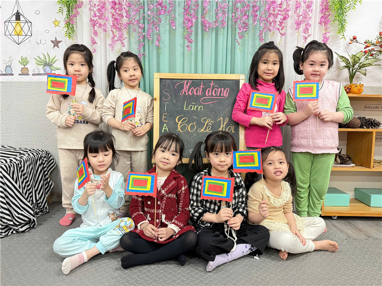 Hoạt động STEAM “Làm cờ lễ hội” nhân dịp Giỗ Tổ Hùng Vương là một cách giáo dục sinh động, giúp trẻ học hỏi qua trải nghiệm và nuôi dưỡng tình yêu với truyền thống Việt Nam ngay từ những năm đầu đời.