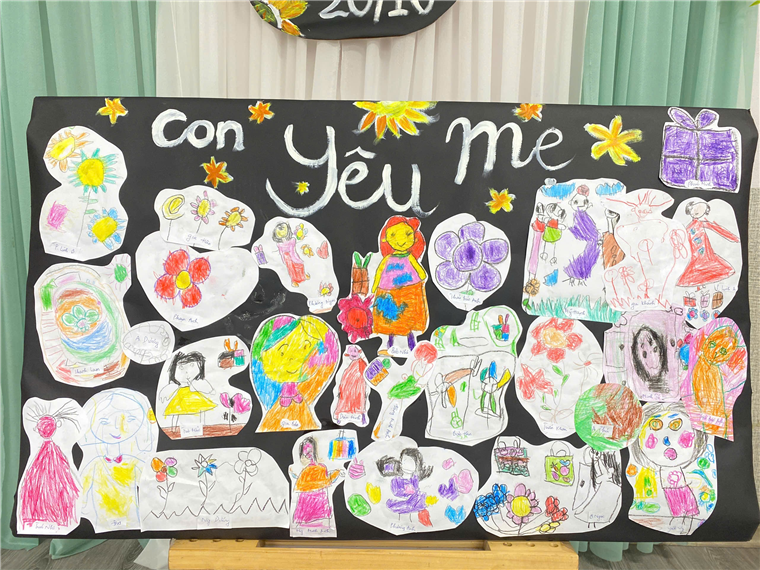 Trong không khí hào hứng của ngày lễ, các bé đã tự tay vẽ những bức tranh ngộ nghĩnh, thể hiện tình cảm dành cho mẹ. Mỗi bức tranh là một câu chuyện nhỏ đáng yêu, có bé vẽ cảnh mẹ dắt tay mình đi học, có bé vẽ mẹ đang nấu ăn hoặc đang ôm mình vào lòng. Các bức tranh không chỉ đẹp mắt mà còn thể hiện tâm hồn trong sáng, yêu thương của các bé.