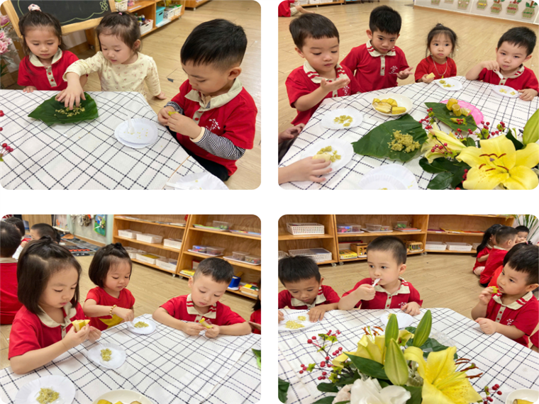 Các con thưởng thức món cốm với một số món ăn kết hợp thưởng trà