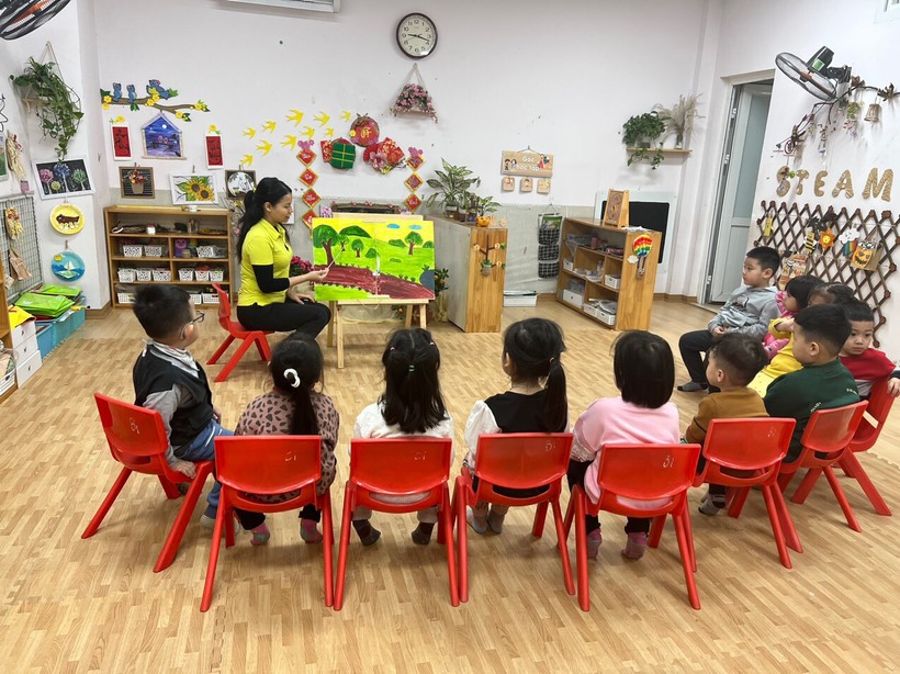 Với những bài học đầu tiên, cô giáo đã giúp các con hiểu những lợi ích của cây xanh: cây xanh dùng để trang trí, điều hòa không khí,cung cấp oxi, phòng chống lũ lụt... đồng thời giúp các con tìm hiểu những hình ảnh, yếu tố nào ảnh hưởng trực tiếp đến sự phát triển