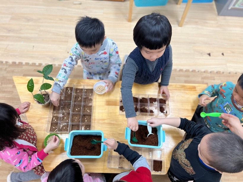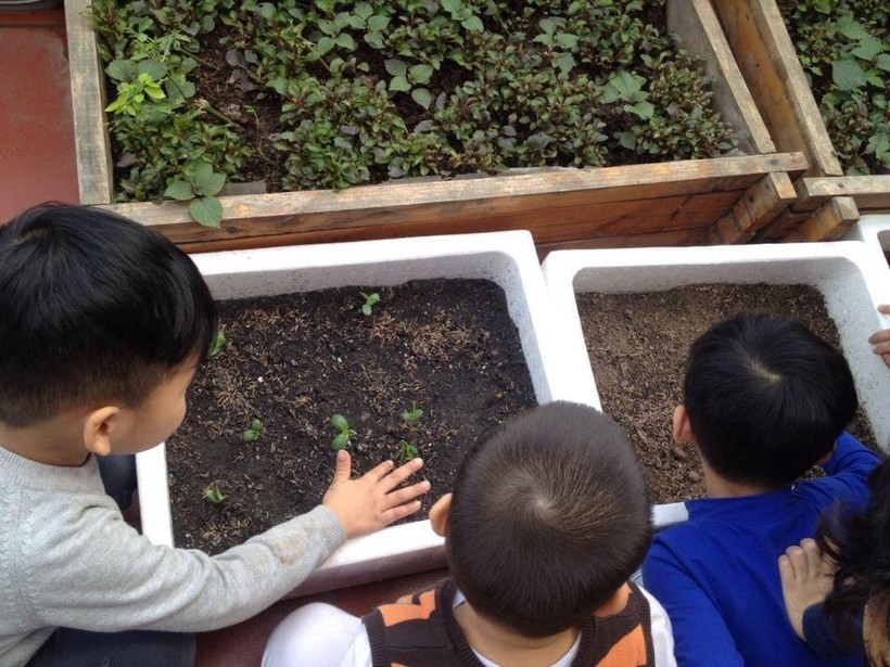 Không chỉ được học tập, được quan sát, được vẽ, các bạn nhỏ lớp B1 còn được tự tay gieo trồng những hạt mầm của riêng mình. Mỗi bạn có 1 hạt mầm, một ô đất riêng để gieo trồng, được tự tay chăm sóc. Đây là một trải nghiệm vô cùng thú vị cả về tình cảm lần kiến thức cho trẻ. Được tự tay mình chăm sóc sẽ giúp các con yêu hơn cây xanh của chính mình. Qua quá trình chăm sóc ấy, các con hiểu được cây xanh cần có những gì để phát triển, vì sao cây của mình lại xanh tốt hơn mỗi ngày. Các con được trải nghiệm cả những thất bại khi hạt không thể nảy mầm hay cây không thể lớn. Thất bại không phải là điều tiêu cực đối với trẻ mà quan trọng hơn là sau những thất bại ấy, trẻ học được những bài học gì, vui vẻ, lạc quan và nỗ lực hơn thông qua sự chia sẻ, chỉ bảo của cô giáo.