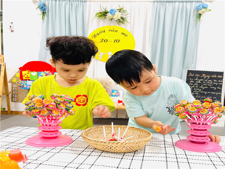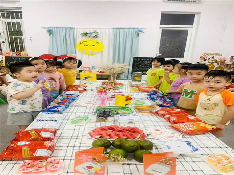 Những hoạt động này giúp các con phát triển cả năm lĩnh vực: phát triển thể chất, phát triển nhận thức, phát triển ngôn ngữ, phát triển thẩm mỹ, phát triển tình cảm kỹ năng xã hội... Đặc biệt hơn nữa, các con được khắc sâu công ơn vô bờ của mẹ, được thể hiện lòng biết ơn với bà, với mẹ và cô giáo của mình. Sản phẩm của các con chắc chắn sẽ là một món quà vô cùng ý nghĩa dành tặng cho bà và mẹ nhân ngày 20/10. Sau đây là một số hình ảnh trong các hoạt động của dự án.