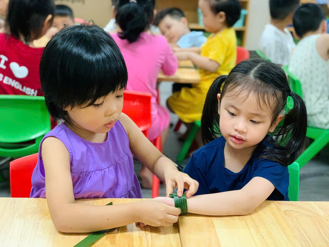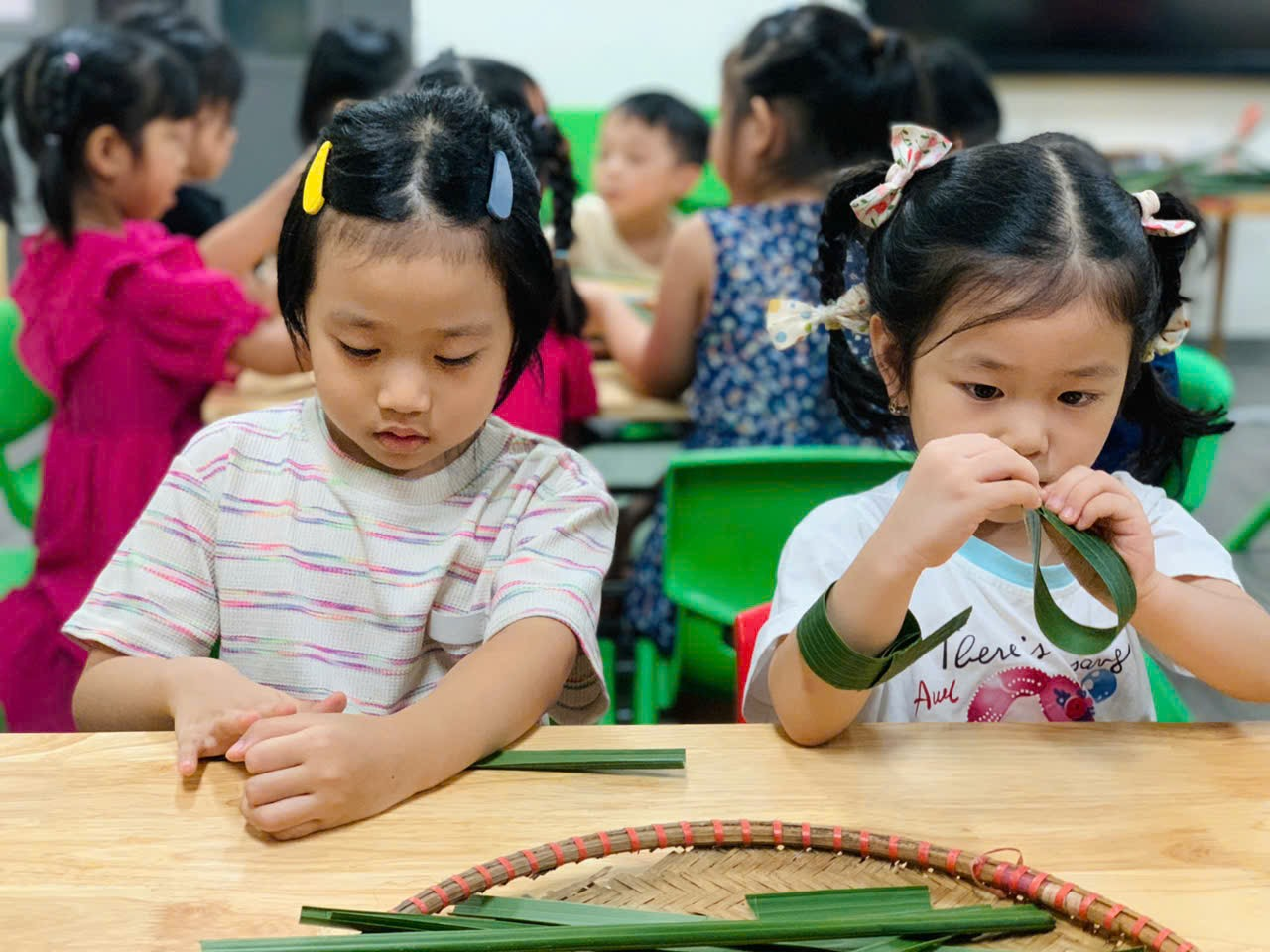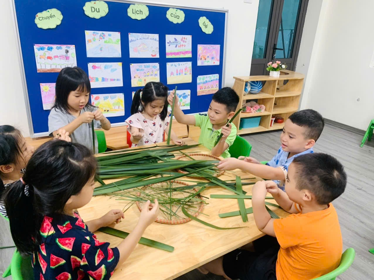 Hoạt động này không chỉ giúp các bé phát triển khả năng sáng tạo, mà còn khuyến khích tinh thần làm việc nhóm, tăng cường sự kiên nhẫn và tỉ mỉ trong từng chi tiết nhỏ. Những tiếng cười vui vẻ, sự chăm chú và niềm tự hào khi hoàn thành sản phẩm chính là điều quý giá nhất mà buổi học mang lại cho các bé.Việc giáo dục trẻ nhận thức về việc bảo vệ môi trường, việc tái sử dụng và tận dụng những nguyên vật liệu có sẵn: Lá dừa, lá chuối, lá tre,...để không bị hoang phí là một điều rất tốt, Vừa giúp nâng cao ý thức, vừa nâng cao tính sáng tạo cho trẻ.