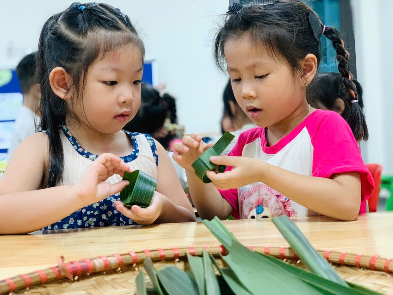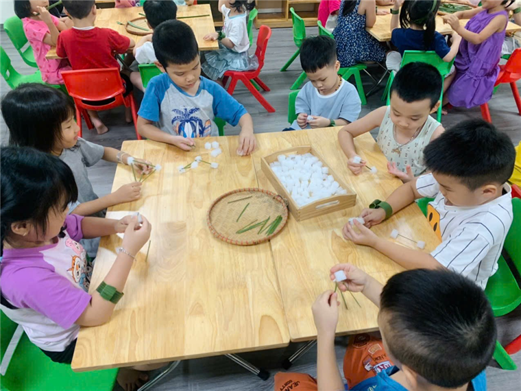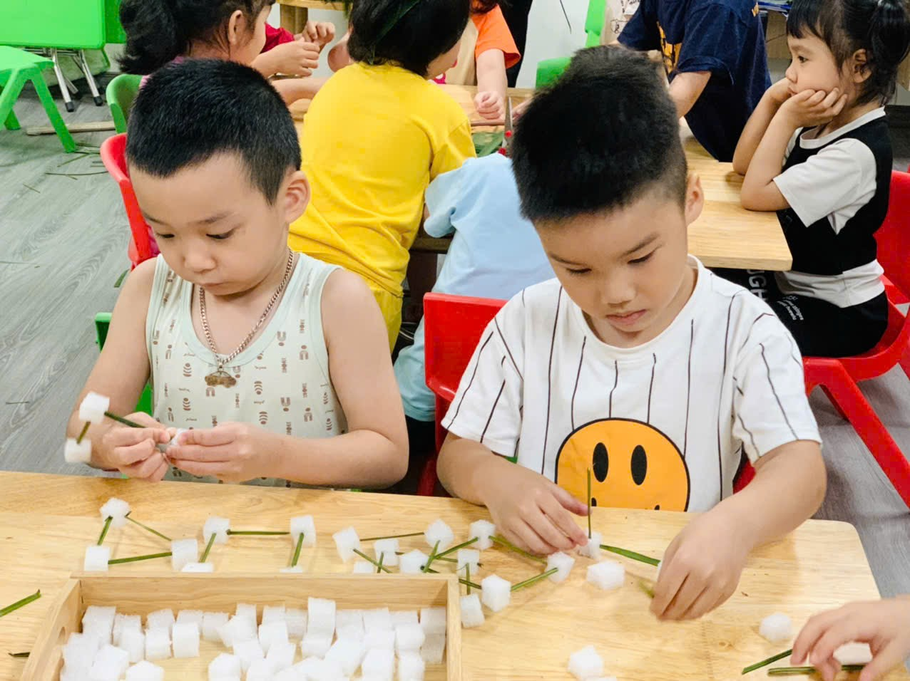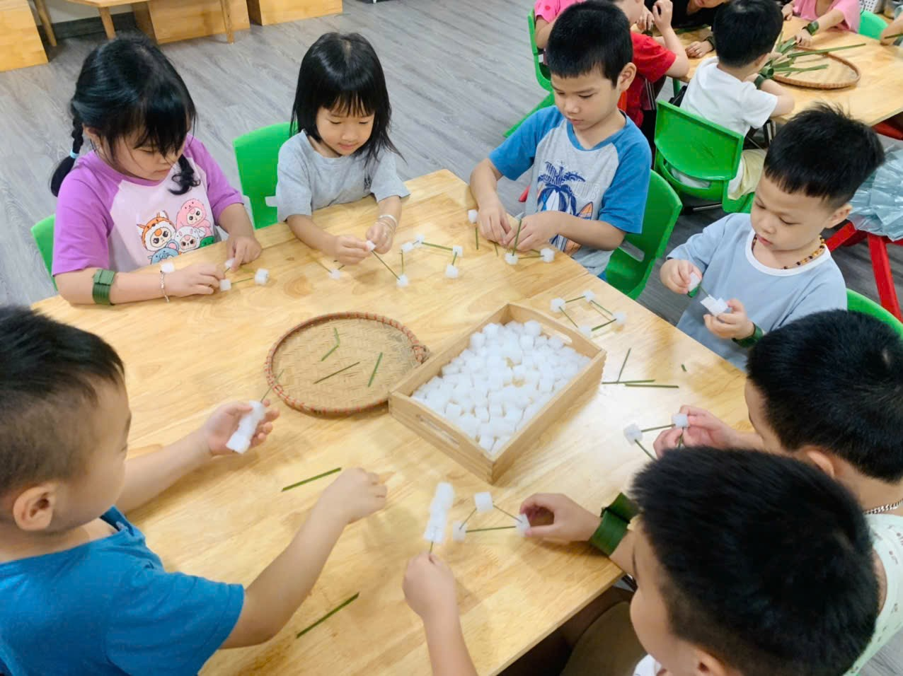 Hoạt động này không chỉ giúp các bé phát triển khả năng sáng tạo, mà còn khuyến khích tinh thần làm việc nhóm, tăng cường sự kiên nhẫn và tỉ mỉ trong từng chi tiết nhỏ. Những tiếng cười vui vẻ, sự chăm chú và niềm tự hào khi hoàn thành sản phẩm chính là điều quý giá nhất mà buổi học mang lại cho các bé.Việc giáo dục trẻ nhận thức về việc bảo vệ môi trường, việc tái sử dụng và tận dụng những nguyên vật liệu có sẵn: Lá dừa, lá chuối, lá tre,...để không bị hoang phí là một điều rất tốt, Vừa giúp nâng cao ý thức, vừa nâng cao tính sáng tạo cho trẻ.