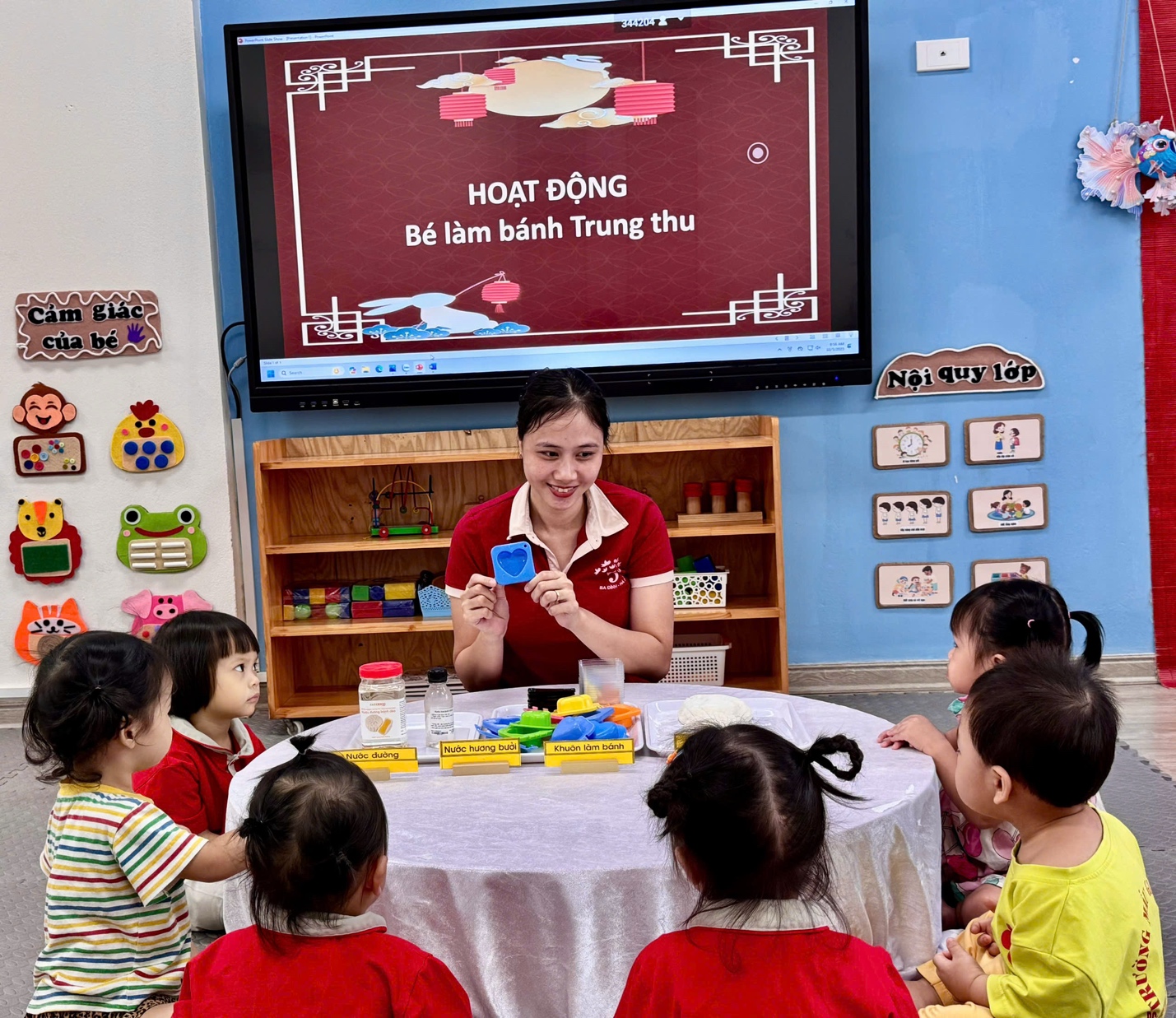 Qua hoạt động này, các con không chỉ được rèn luyện kỹ năng vận động tinh, sự khéo léo của đôi bàn tay, mà còn thêm hiểu biết về hương vị và nét đẹp truyền thống của Tết Trung thu.