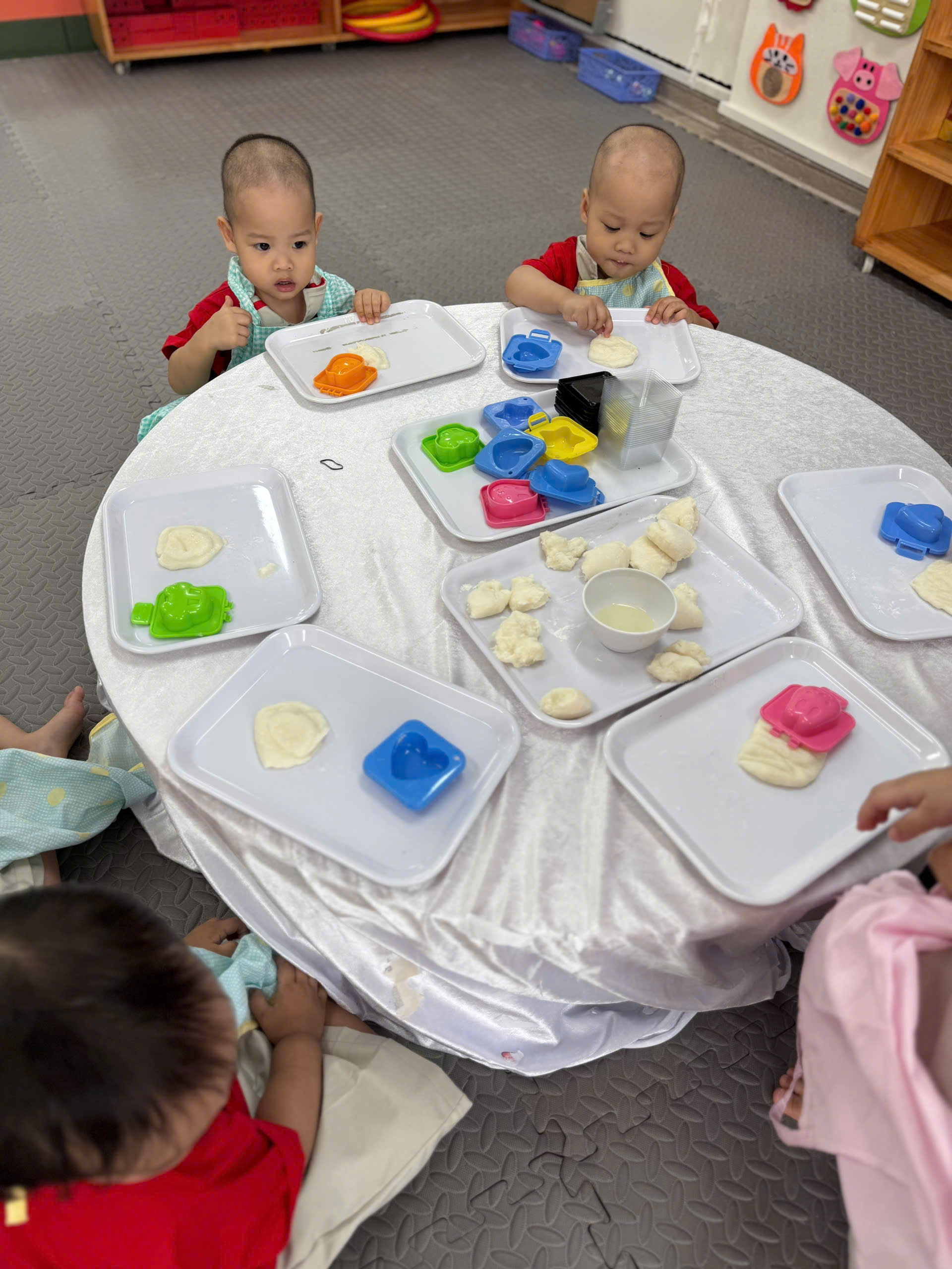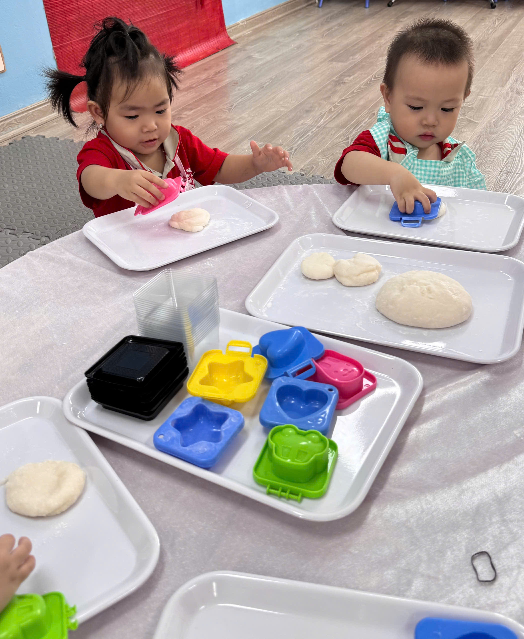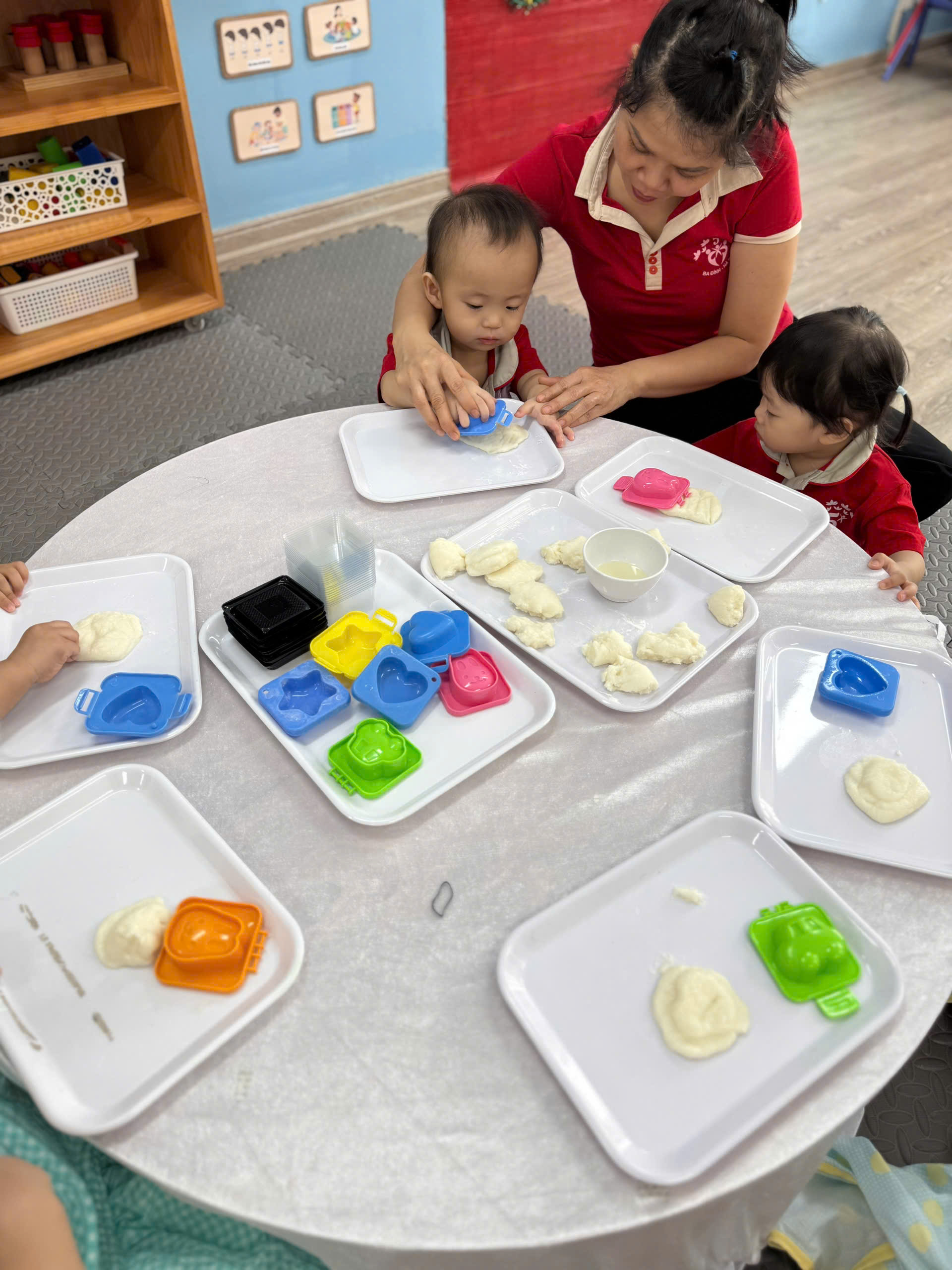 Dưới sự hướng dẫn tận tình của cô giáo, những đôi bàn tay nhỏ xinh đã được chạm vào bột, vo tròn, ấn khuôn để tạo ra những chiếc bánh dẻo xinh xắn. Dù còn vụng về, đôi khi bột rơi ra bàn hay chiếc bánh chưa thật tròn trịa, nhưng niềm vui, sự hào hứng và nụ cười hồn nhiên của các con đã làm cho hoạt động trở nên thật ý nghĩa.