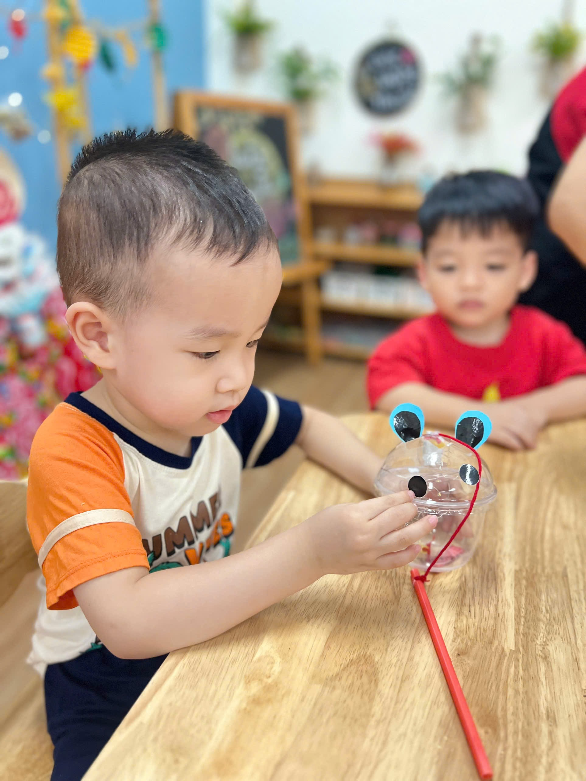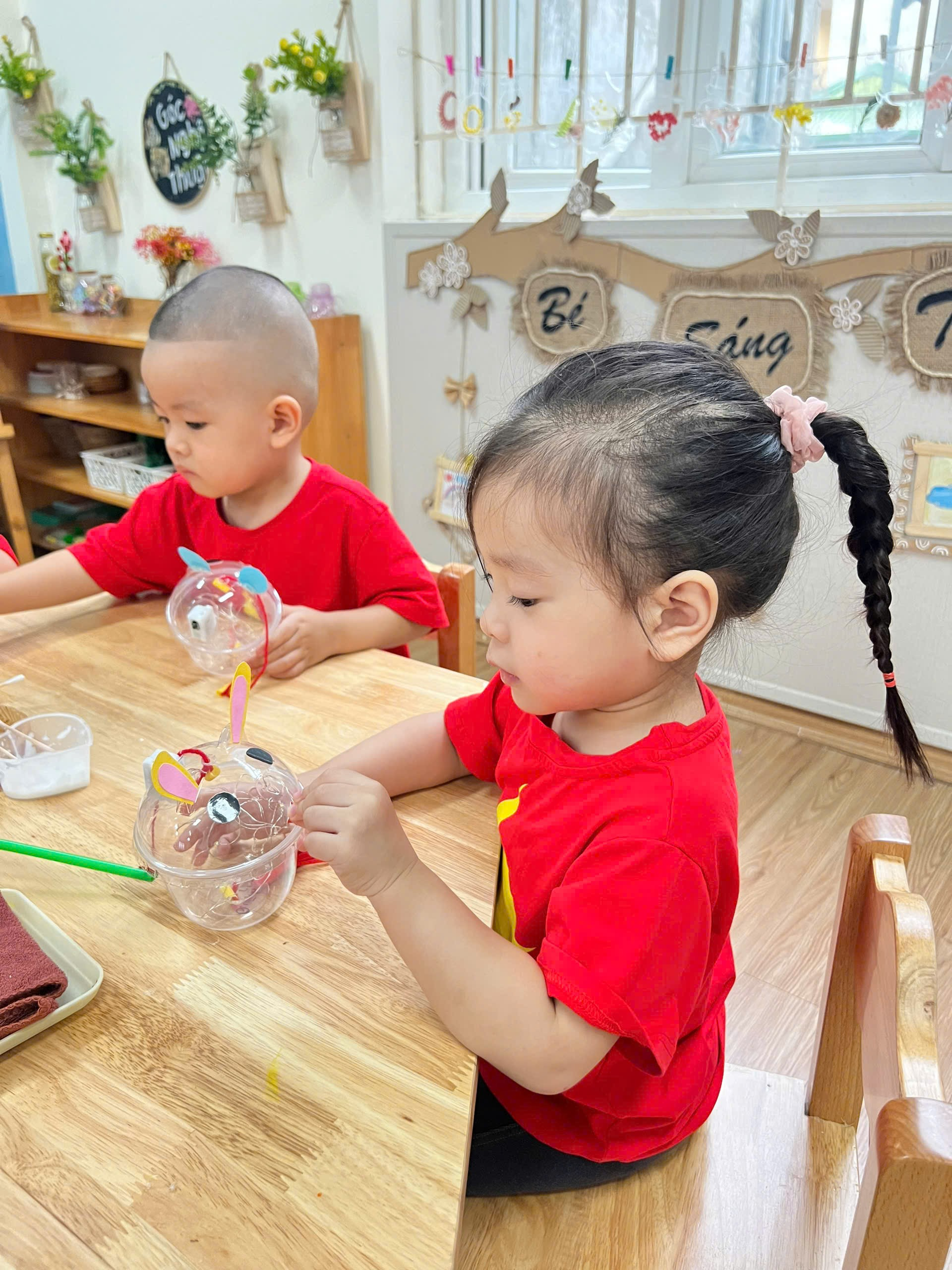 Tết Trung thu đang đến gần, các bé lớp nhà trẻ đã cùng nhau tham gia hoạt động sáng tạo vô cùng thú vị: Trang trí lồng đèn từ cốc nhựa.