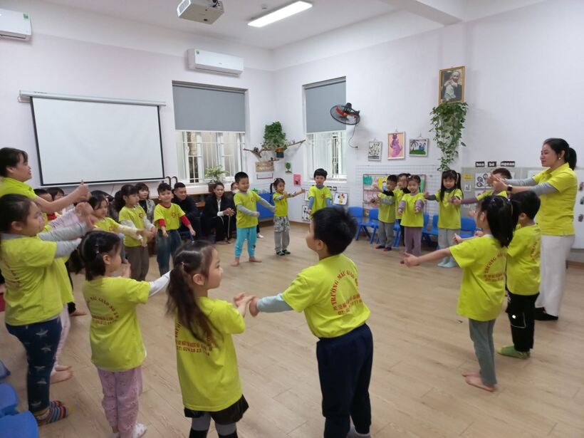 Ngày 7/3 lớp Mẫu giáo lớn A4 vui mừng chào đón các phụ huynh đến tham gia hoạt động giáo dục âm nhạc cùng với các con.