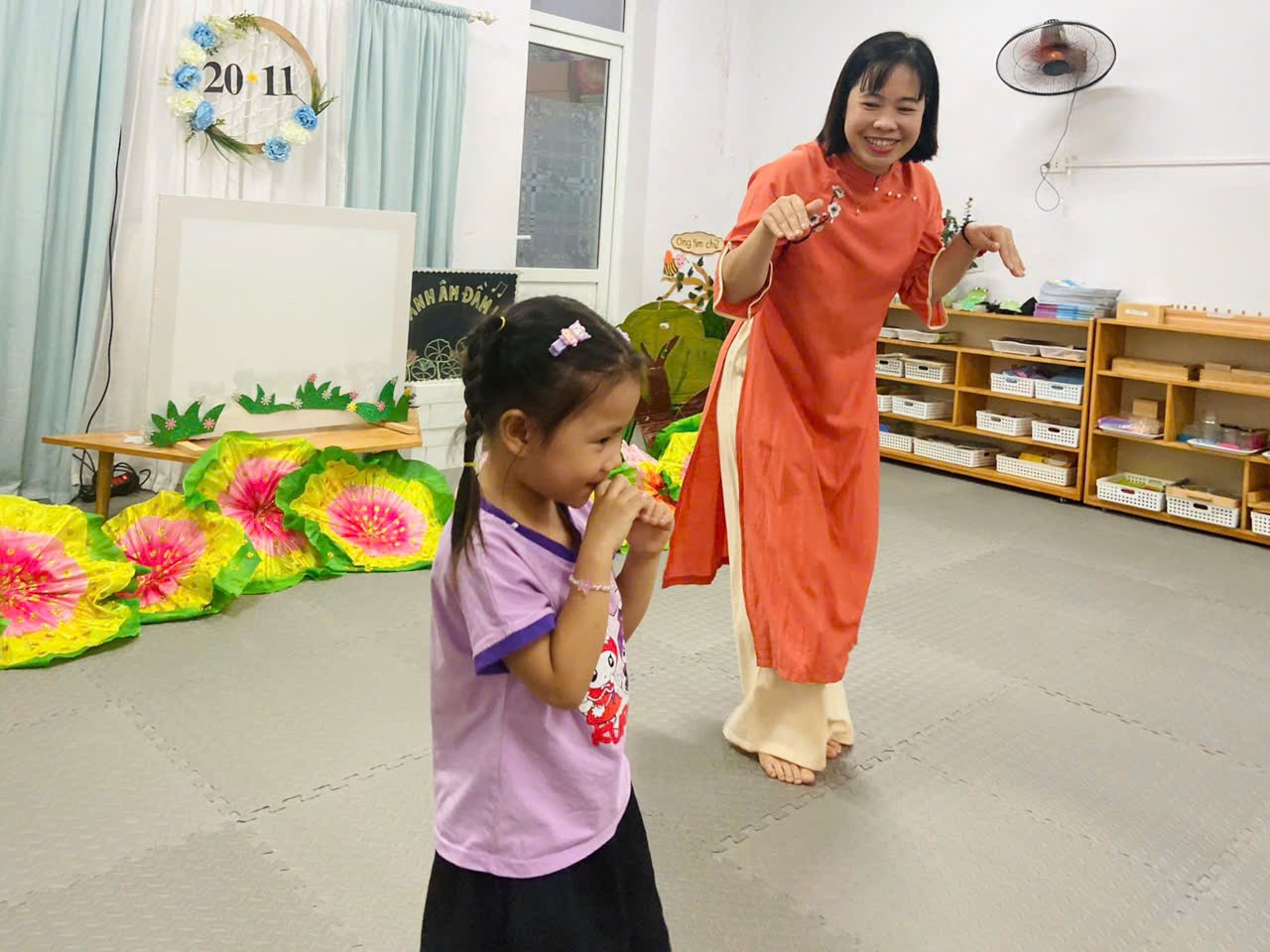 Cô giáo khởi động giờ học, thu hút sự tập trung chú ý của trẻ.