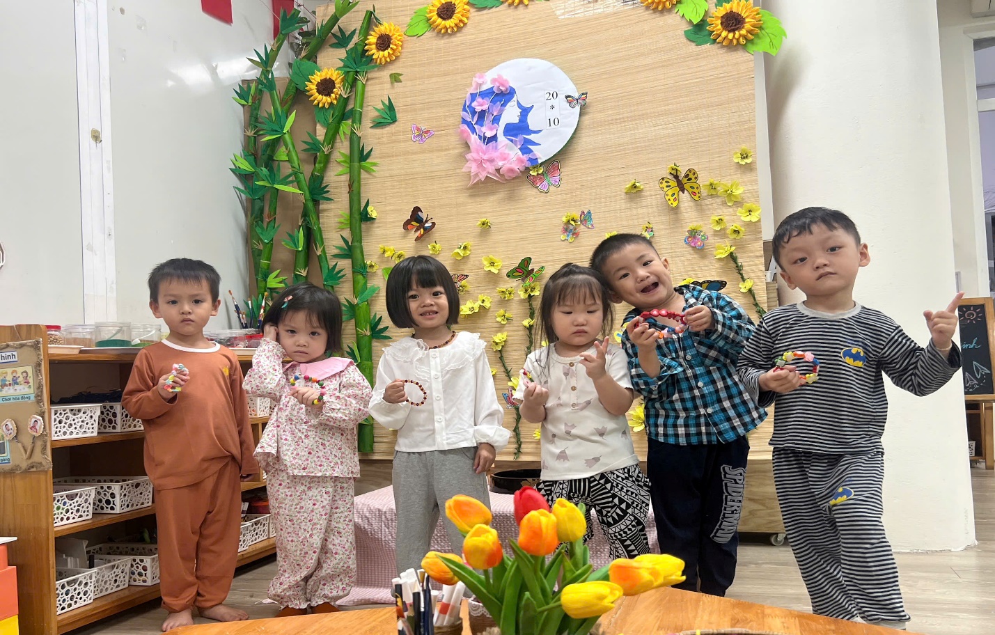 Với đôi tay bé xinh, các con cùng nhau gói những món đồ, nào là chiếc thiệp xinh, xâu những chiếc vòng nhỏ, bức tranh vẽ, hay những gói bánh, hộp sữa – gửi gắm trong đó biết bao yêu thương và sẻ chia.