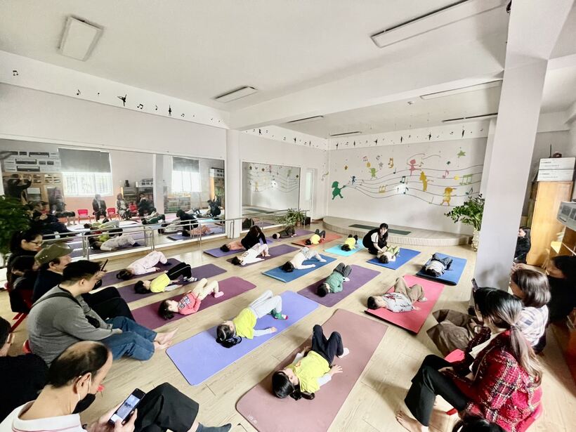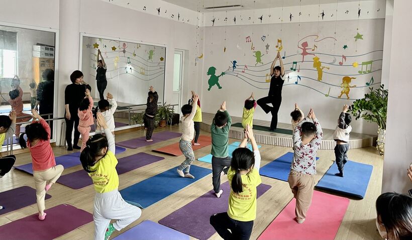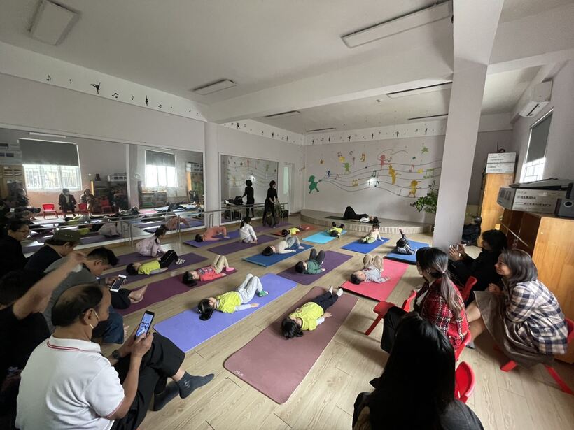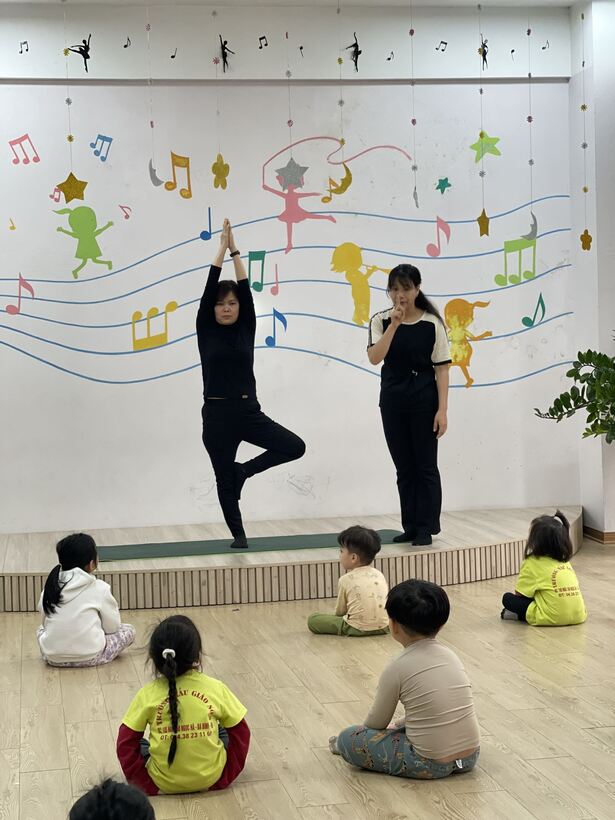 Giáo viên hướng dẫn các con những động tác yoga