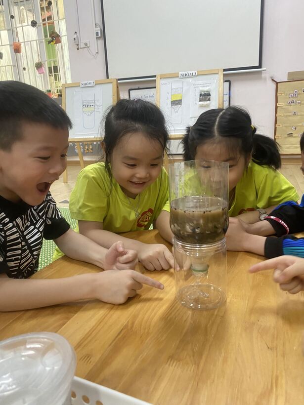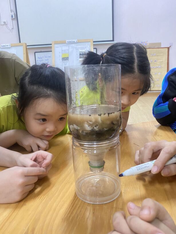 Qua hoạt động, có thể thấy những ánh mắt rất hào hứng, vui sướng khi máy lọc nước của các con đã lọc được những chai nước có nhiều cặn bẩn thành những chai nước sạch và trong hơn.