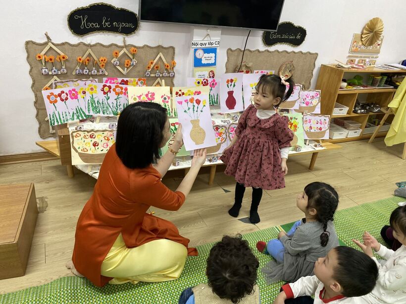 Ngày 8-3, chắc hẳn người phụ nữ nào cũng sẽ mong muốn được nhận những món quà ý nghĩa từ người thân. Và sẽ chẳng có gì đặc biệt và ấm áp hơn là những bông hoa các con tự tạo nên bằng chính đôi tay bé nhỏ của mình. Và thú vị hơn nữa chính là mẹ được nhìn thấy con vui tươi, tự tin và sáng tạo tại ngôi nhà thứ 2, lớp mầm non của mình.