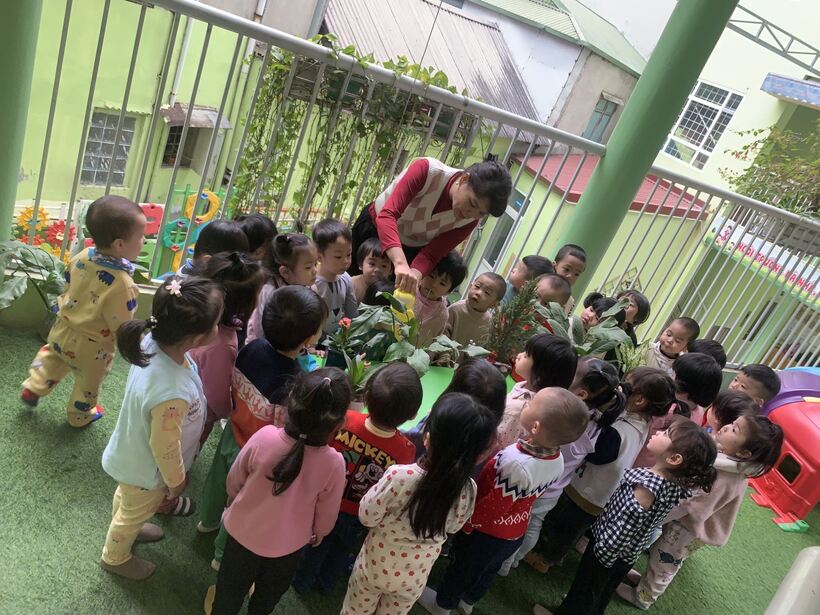 Các con cũng được thăm quan và tự tay mình chăm sóc những vườn cây của trường, của lớp. bạn nào cũng hồ hởi, tò mò, thích thú khi nhìn thấy cây lớn lên mỗi ngày, khi thấy cây ra hoa, kết quả.