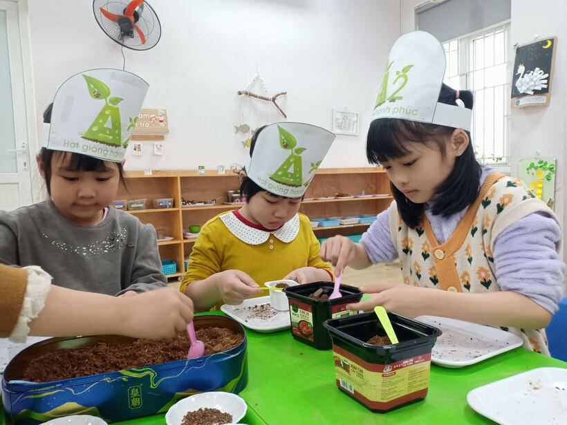Nhiều lớp đã tổ chức cho các con gieo hạt, tự vun trồng những mầm cây của mình. Đây là một hoạt động không những giúp trẻ được trải nghiệm mà còn giúp trẻ hiểu rõ hơn về sự phát triển của cây, hiểu được những yếu tố ảnh hưởng đến sự sinh trưởng vàp hát triển của cây xanh.