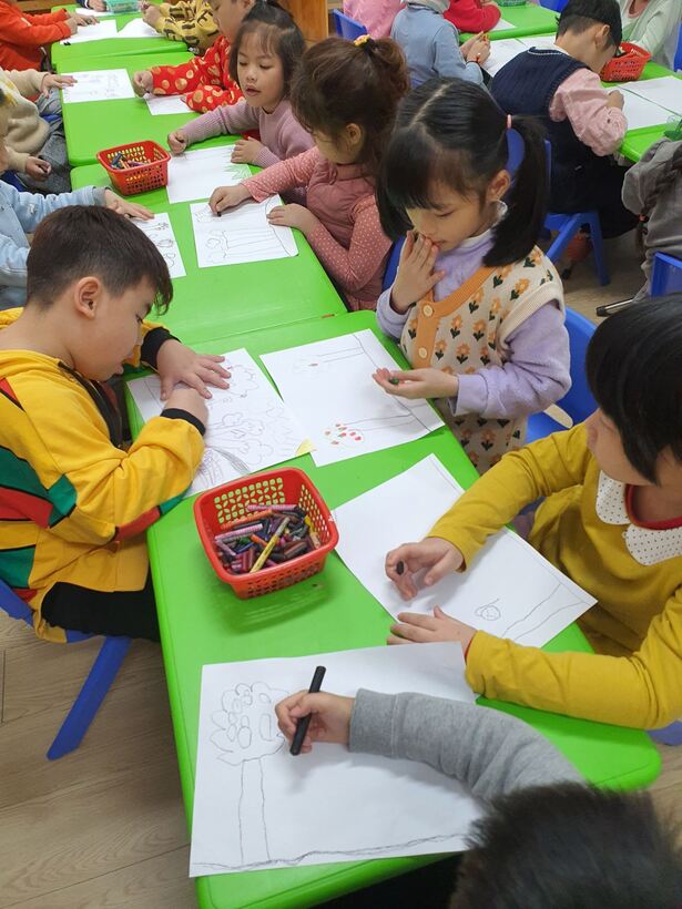Vẽ tranh về khu vườn mơ ước cũng là một hoạt động mà nhiều lớp đã cho trẻ thực hiện, trẻ được thỏa sức sáng tạo trong bức tranh, vẽ nên những khu vườn, cánh rừng bạt ngàn cây xanh mà mình yêu thích.