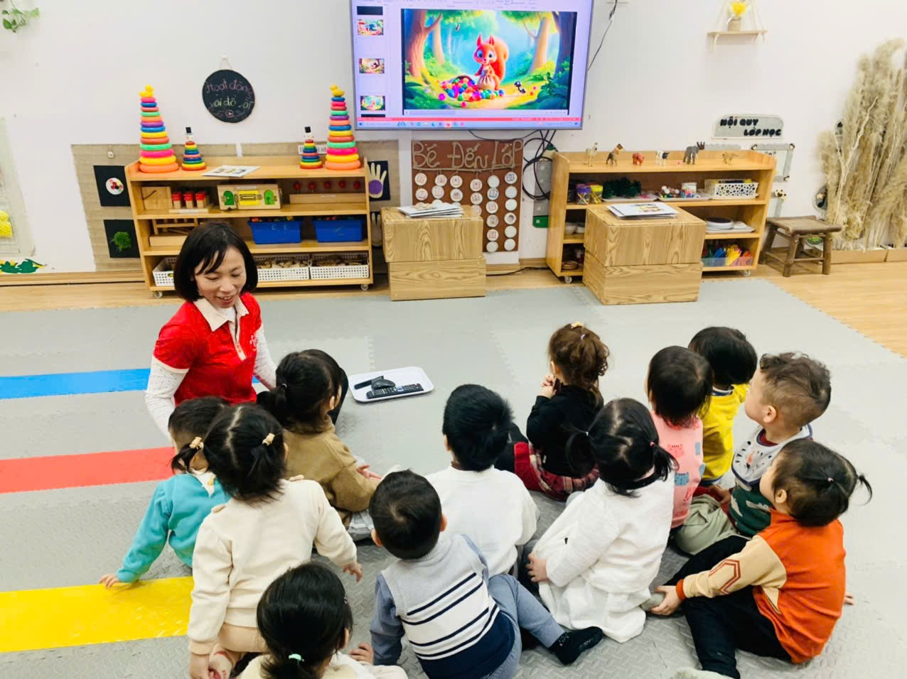 Cô giáo Lê Thị Tâm đã lồng ghép câu chuyện vào giờ học để thu hút sự tập trung chu ý của trẻ. Từ đó cô đưa ra những câu hỏi để trẻ trả lời, những yêu cầu để trẻ hoạt động.