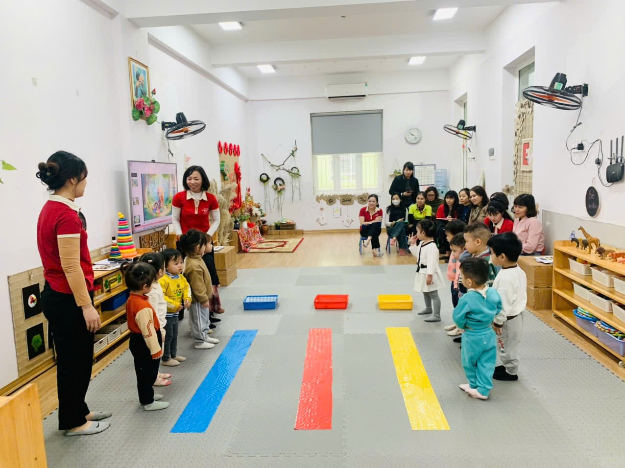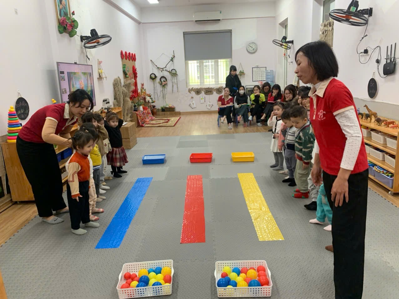 Hoạt động này không chỉ cho trẻ ôn nhận biết phân biệt màu sắc mà còn giúp trẻ phát triển ngôn ngữ, phát triển khả năng nhận thức và góp phần phát triển toàn diện cho trẻ. Đây cũng là hoạt động kiến tập chuyên môn do Phòng Giáo dục và Đào tạo quận Ba Đình đã tổ chức cho đội ngũ giáo viên được kiến tập, bồi dưỡng tại trường Mẫu giáo Mầm non A.