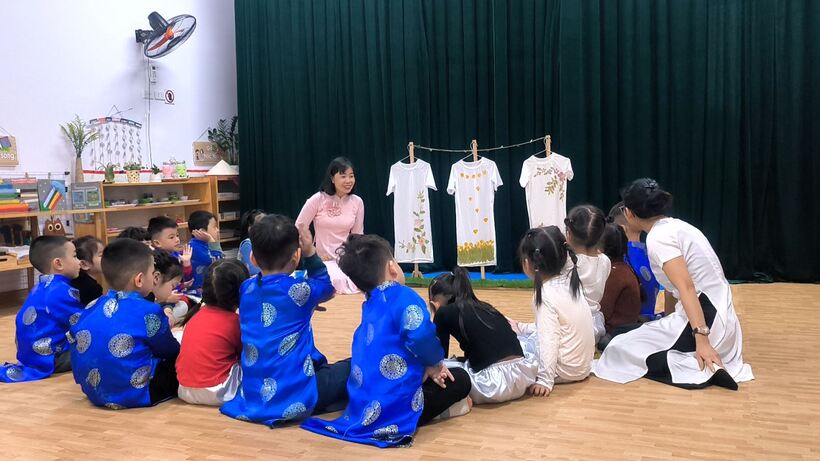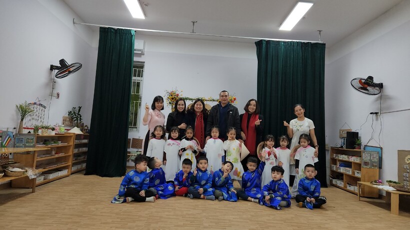 Một số hình ảnh của cô và trò lớp B2 trong hoạt động “ Sắc hoa trên áo dài”
