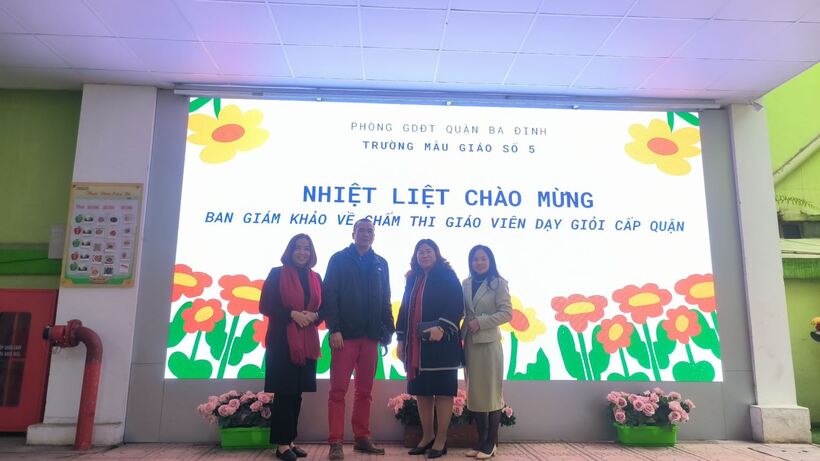 BGH nhà trường đón tiếp đoàn chấm thi giáo viên giỏi cấp Quận