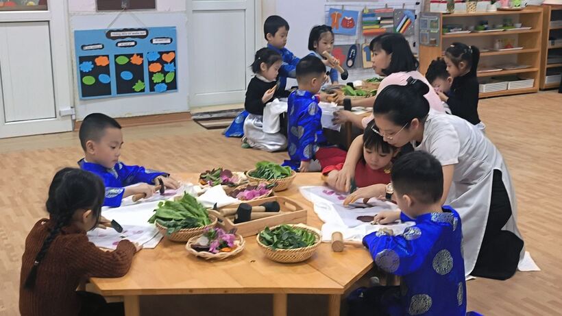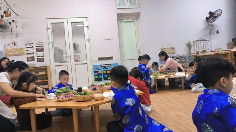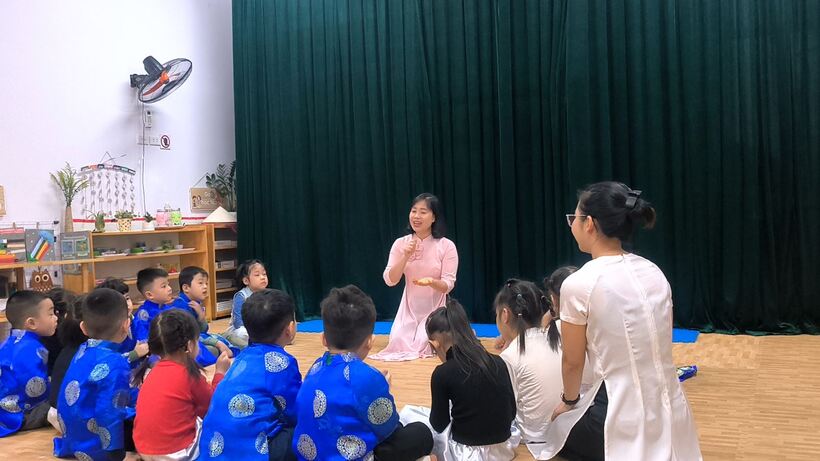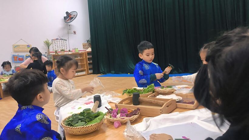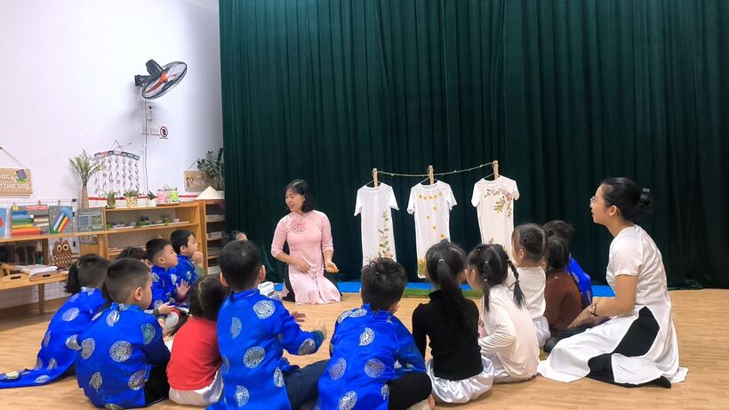 Với sự dẫn dắt nhẹ nhàng, cô giáo Trương Thị Mơ- giáo viên lớp mẫu giáo nhỡ B2 đã đưa lớp học trở lại với làng nghề trồng hoa Ngọc Hà xinh đẹp dần đi vào quá khứ.
