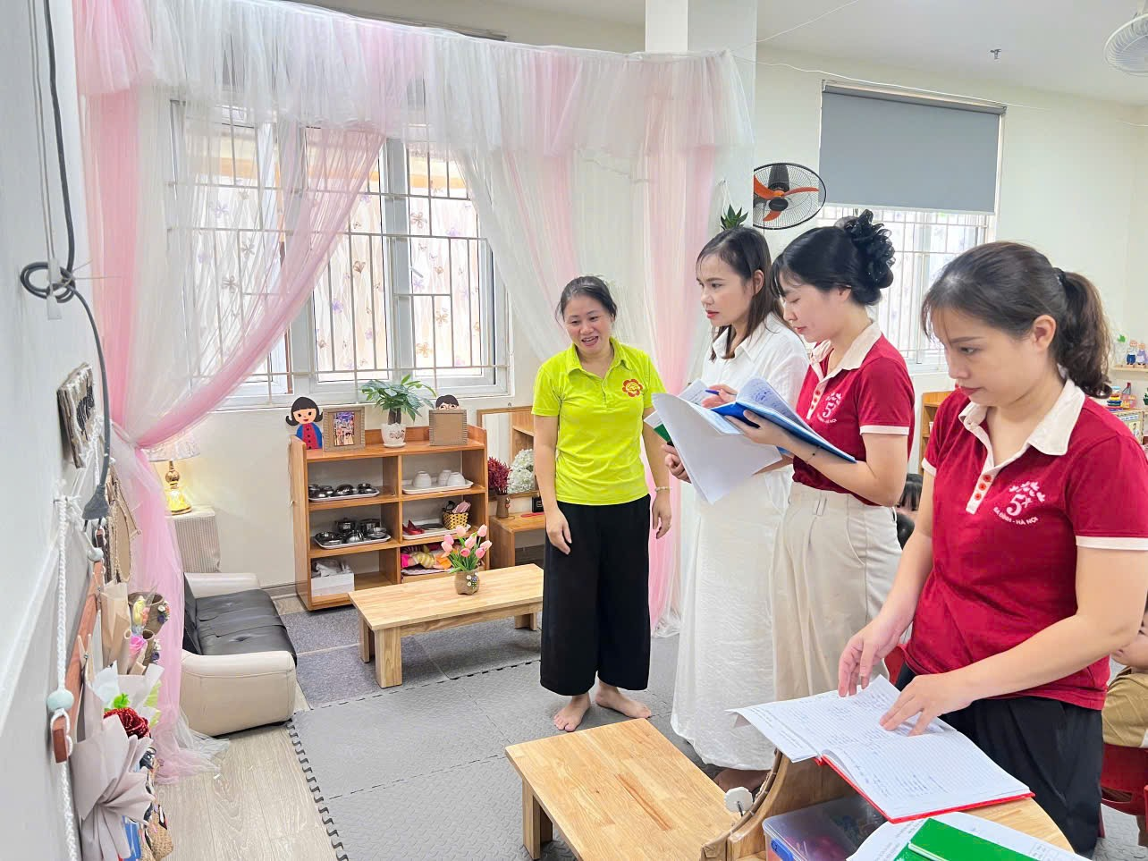 Qua buổi chấm điểm, tổ chấm thi đánh giá cao các lớp đều có sự đầu tư công phu, sáng tạo trong việc thiết kế và trang trí. Nhiều lớp học được đánh giá cao bởi cách tận dụng nguyên liệu tự nhiên và vật liệu tái chế, tạo nên không gian học tập sinh động, gần gũi và an toàn cho trẻ.