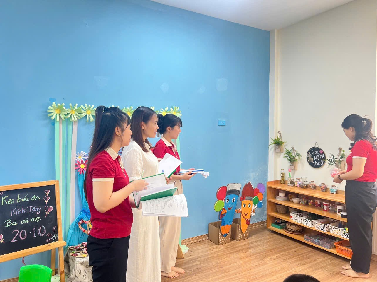 Đặc biệt, các góc trải nghiệm, góc nghệ thuật và góc thiên nhiên được các cô giáo chăm chút tỉ mỉ, thể hiện tình yêu nghề và sự tận tâm trong công tác giáo dục.