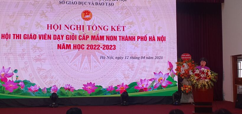 Sau phần chào cờ trang nghiêm, bà Hoàng Thanh Hương, trưởng phòng Giáo dục mầm non, Sở Giáo dục và đào tạo thành phố Hà Nội đã báo cáo tổng kết Hội thi giáo viên dạy giỏi cấp mầm non thành phố Hà Nội, năm học 2022-2023. Hội nghị cũng đã được lắng nghe ý kiến của đại diện những nhà chuyên môn, thành viên Ban Giám khảo cuộc thi, đại diện giáo viên tham gia cuộc thi với những chia sẻ tâm huyết, sâu sắc.