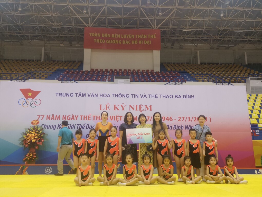 Đội tuyển Trường Mẫu giáo số 5 tham gia cuộc thi Thể dục nhịp điệu do Quận Ba Đình tổ chức