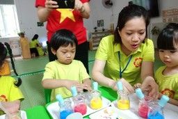 Tổ chức kiến tập hoạt động STEAM “Sắc màu” lớp mẫu giáo bé C2 trường Mẫu giáo số 5.