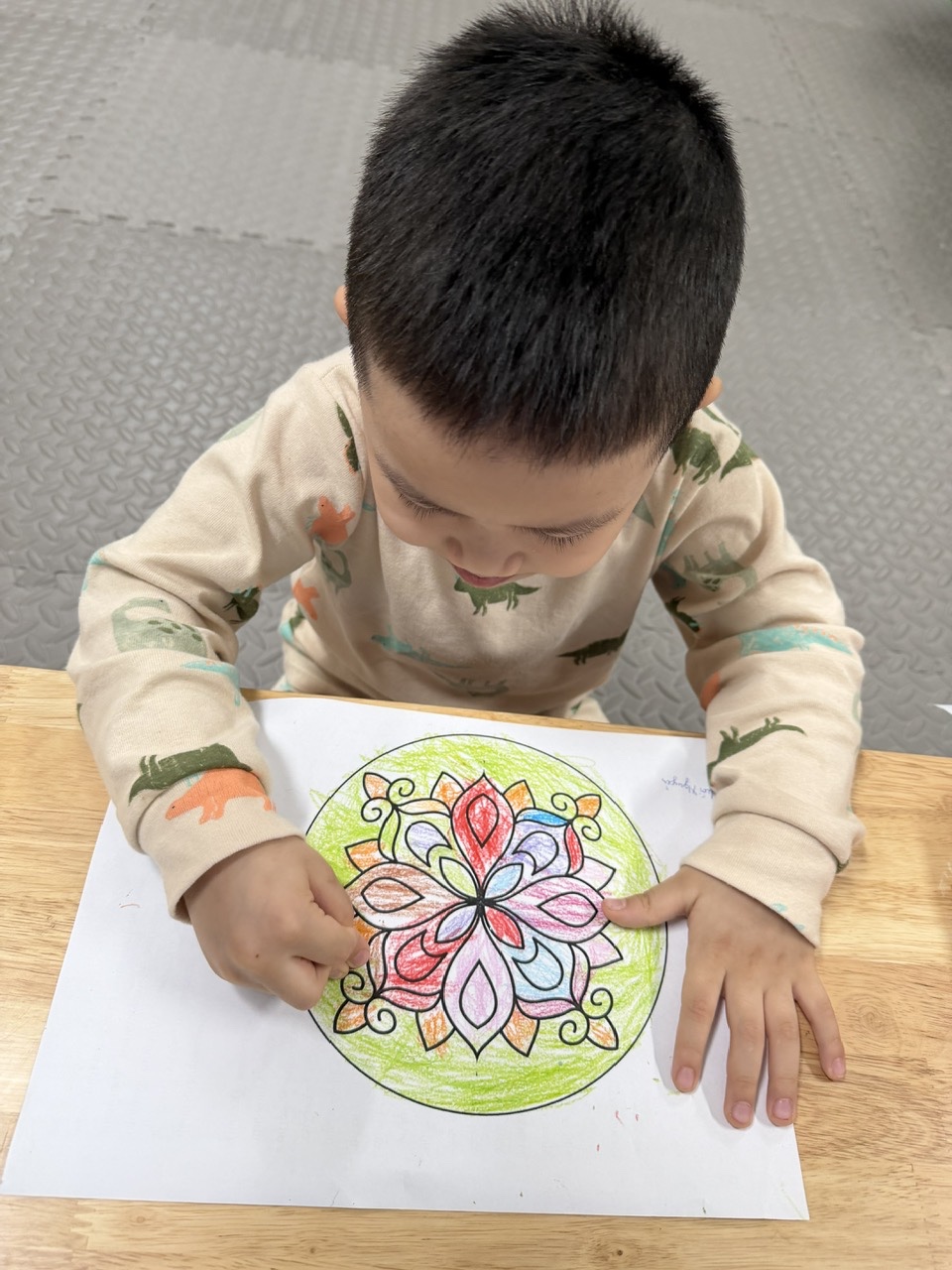 Với đôi tay bé xíu nhưng vô cùng tỉ mỉ, các "họa sĩ nhí" B3 đã tự tay trang trí và hoàn thiện những chiếc quạt giấy tròn rực rỡ. Các bé đã dùng bút màu tô vẽ những họa tiết hoa văn sinh động, đa sắc màu lên mặt quạt. Hoạt động này giúp các con rèn luyện sự khéo léo, tập trung và phát huy tối đa óc sáng tạo của mình.