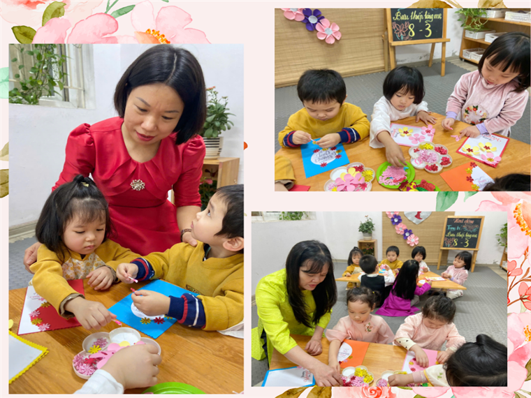 Nhân dịp này, cô và các con lớp C3 đã thực hiện hoạt động tạo hình "Trang trí bưu thiếp 8/3" để giúp các con hiểu được ý nghĩa của ngày Quốc tế Phụ nữ, đồng thời có món quà tự làm đong đầy yêu thương để tặng bà, tặng mẹ.