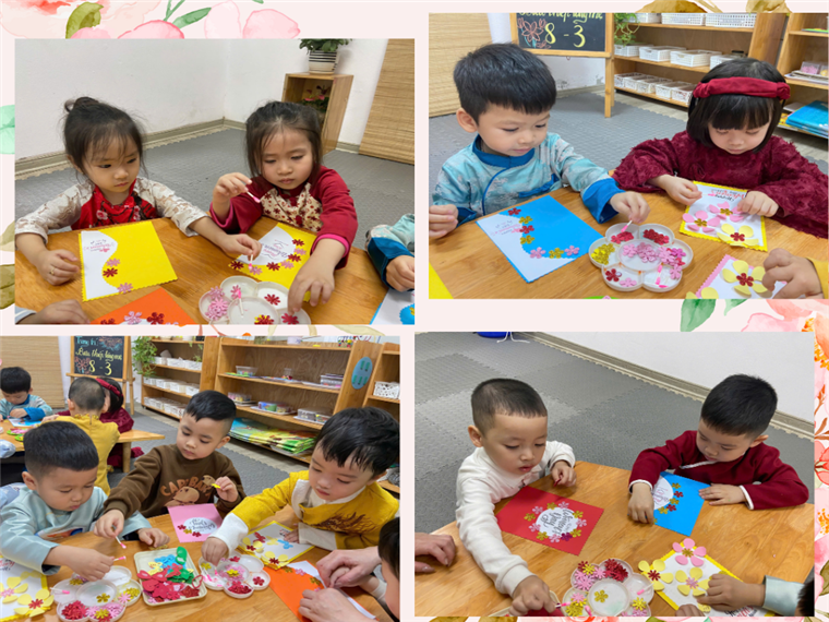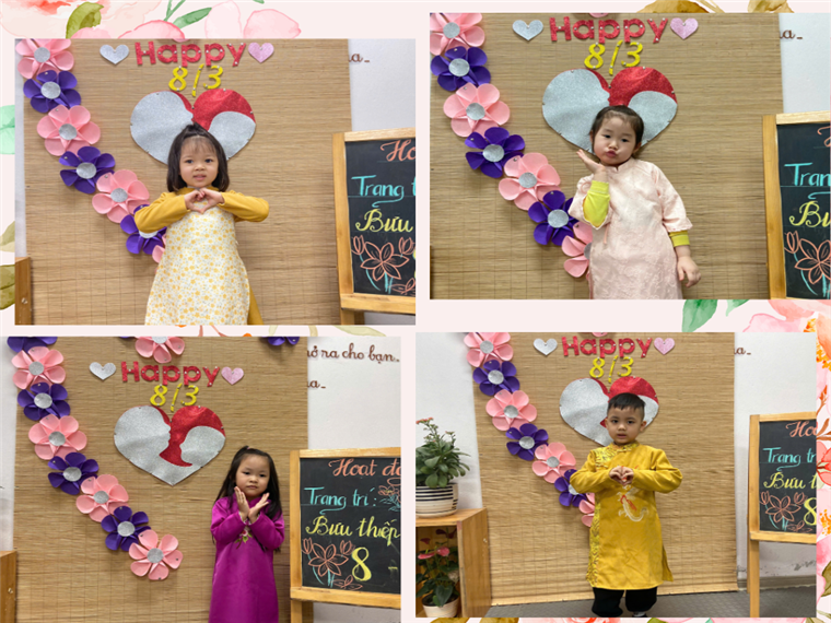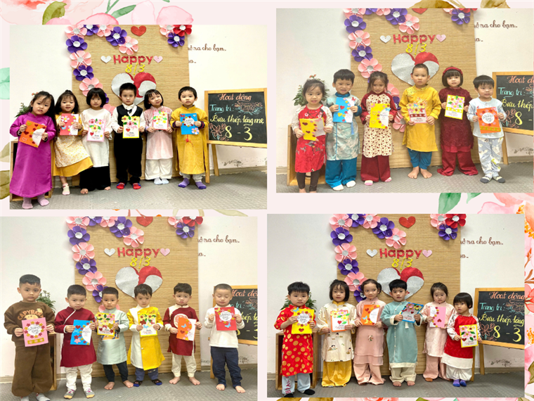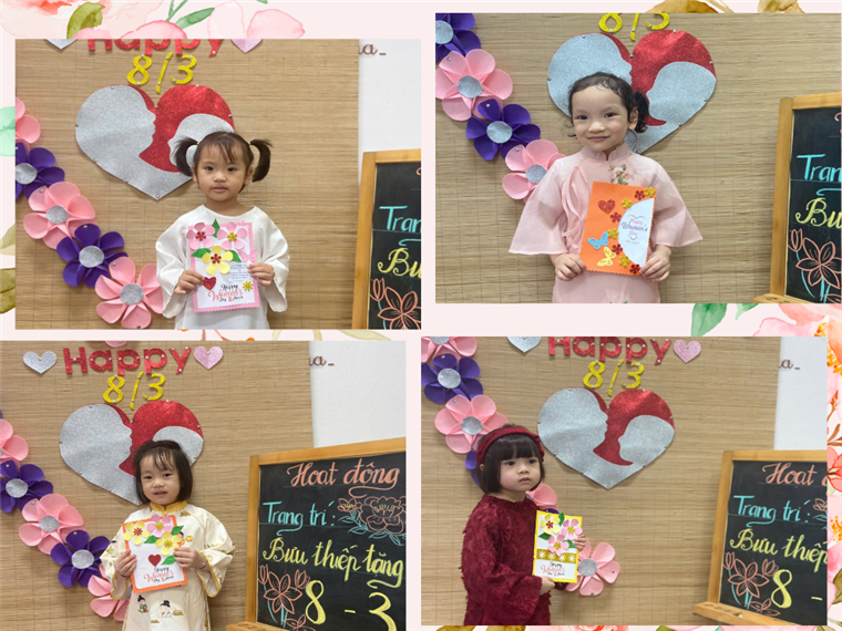 Tham gia hoạt động này các con đã trang trí được một chiếc bưu thiếp thật xinh xắn, đáng yêu và những lời chúc yêu thương làm quà tặng bà, tặng mẹ nhân ngày 8/3