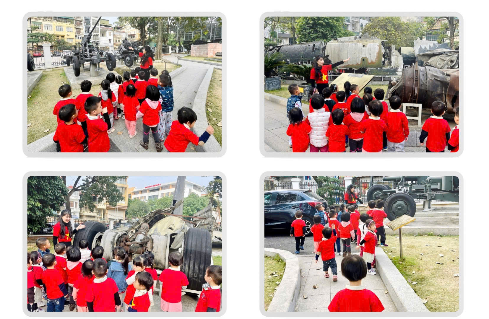 Một trong những hoạt động đặc biệt trong dịp này là chuyến tham quan Bảo tàng B52. Các bé đã được tìm hiểu về lịch sử hào hùng của quân đội nhân dân Việt Nam qua các hiện vật, mô hình và câu chuyện lịch sử. Qua đó, các bé đã hình dung được phần nào về quá khứ đấu tranh oanh liệt của dân tộc, từ đó thêm yêu quê hương, đất nước.