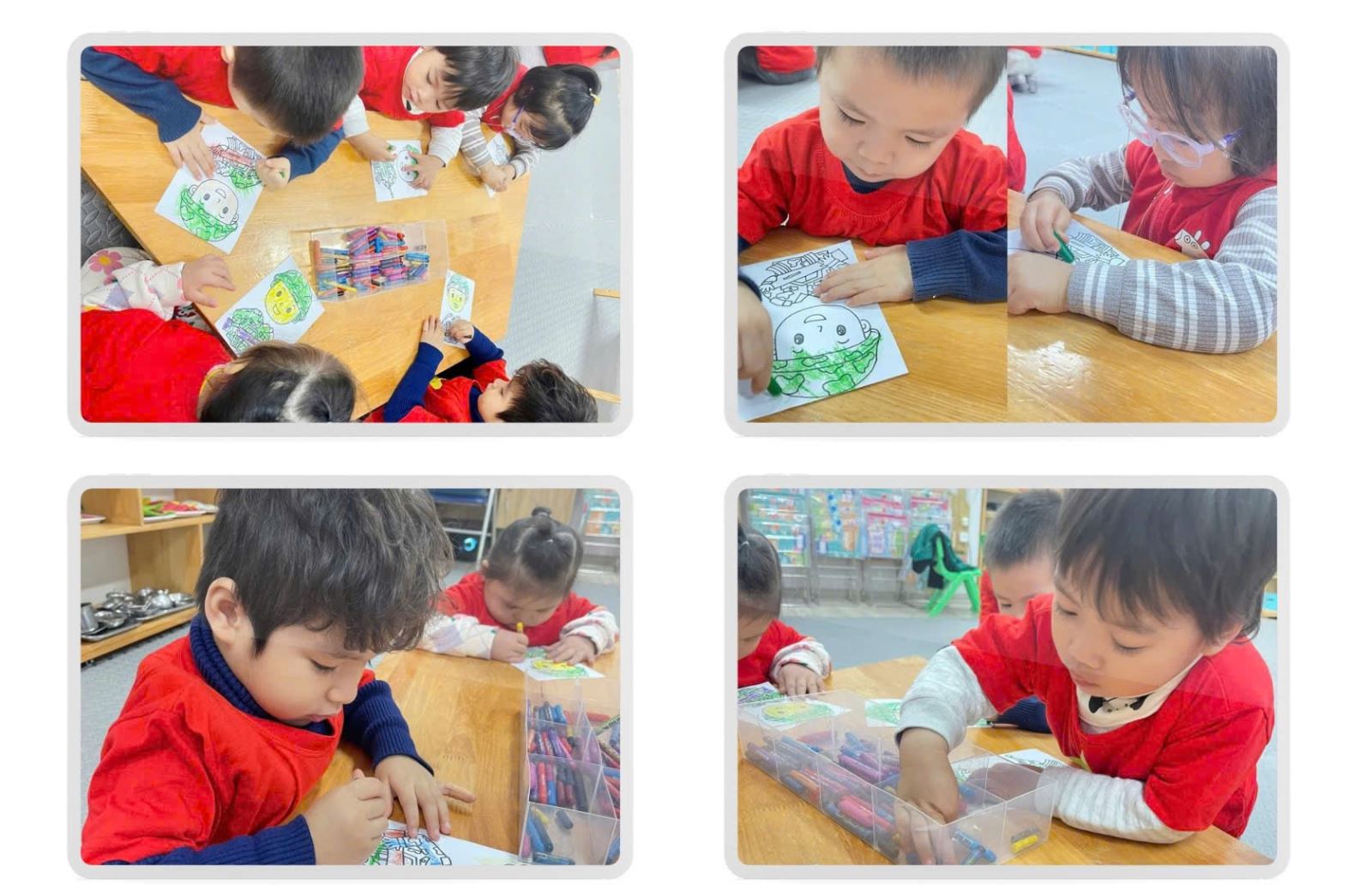 Các bé rất hào hứng tham gia các hoạt động nghệ thuật sáng tạo như tô màu, vẽ tranh, làm xe tăng mini từ các nguyên liệu đơn giản. Qua những bức tranh, những chiếc xe tăng tự tay các bé làm, các con không chỉ thể hiện sự khéo léo, sáng tạo mà còn hiểu thêm về hình ảnh người lính và những phương tiện chiến đấu trong thời kỳ chiến tranh bảo vệ Tổ quốc.
